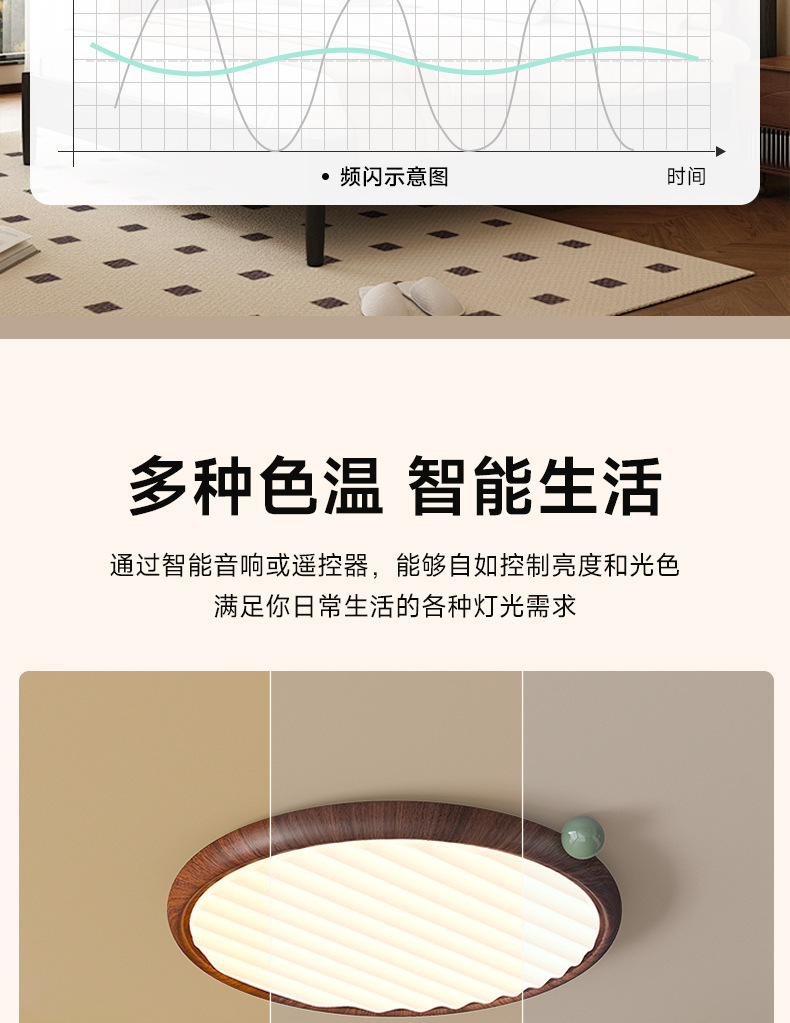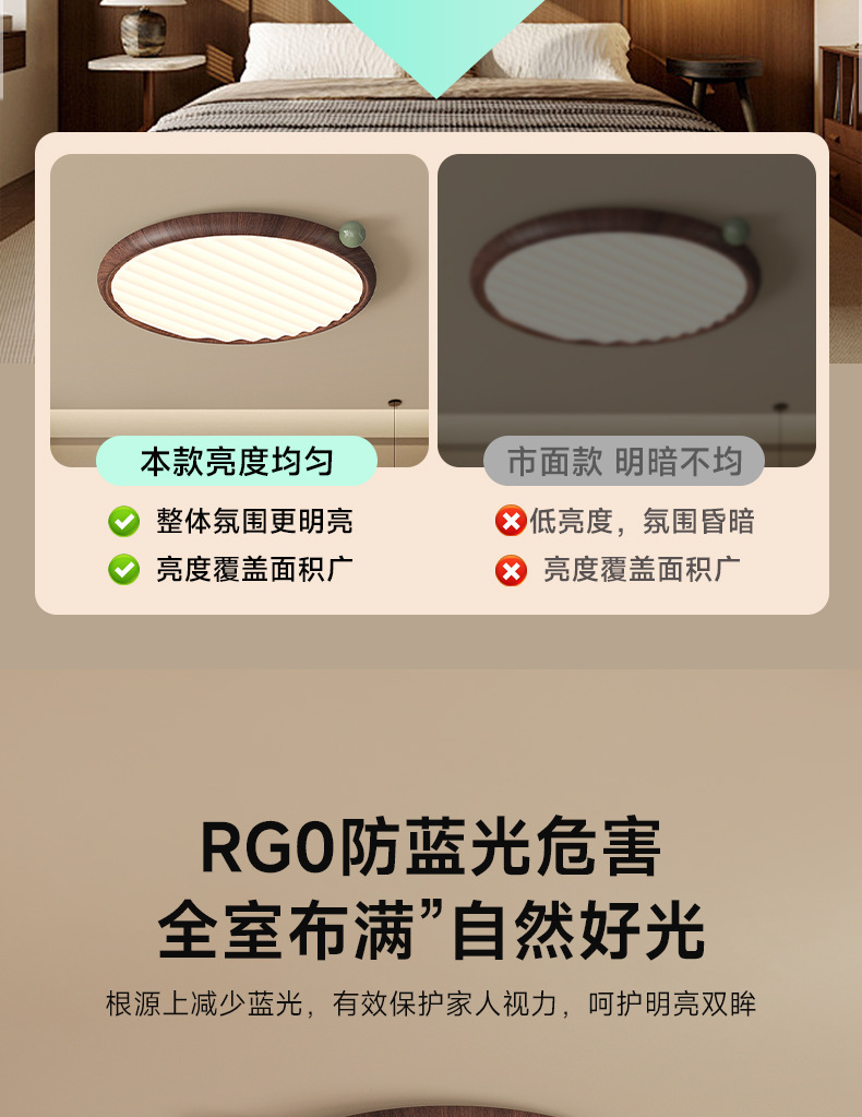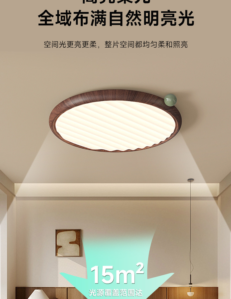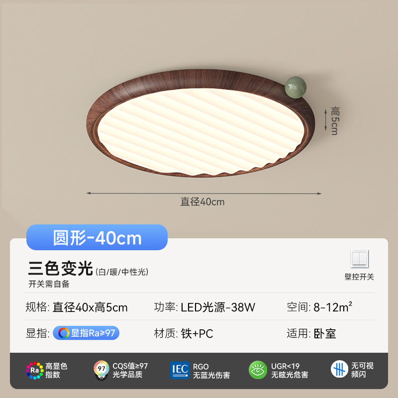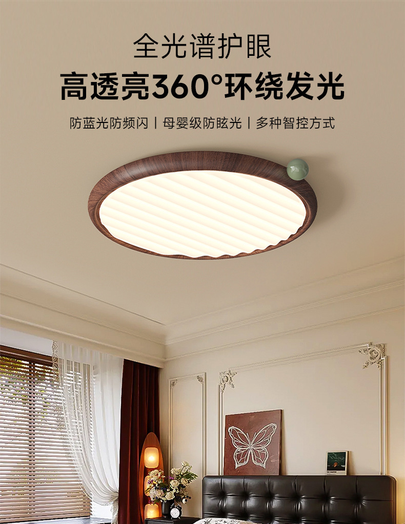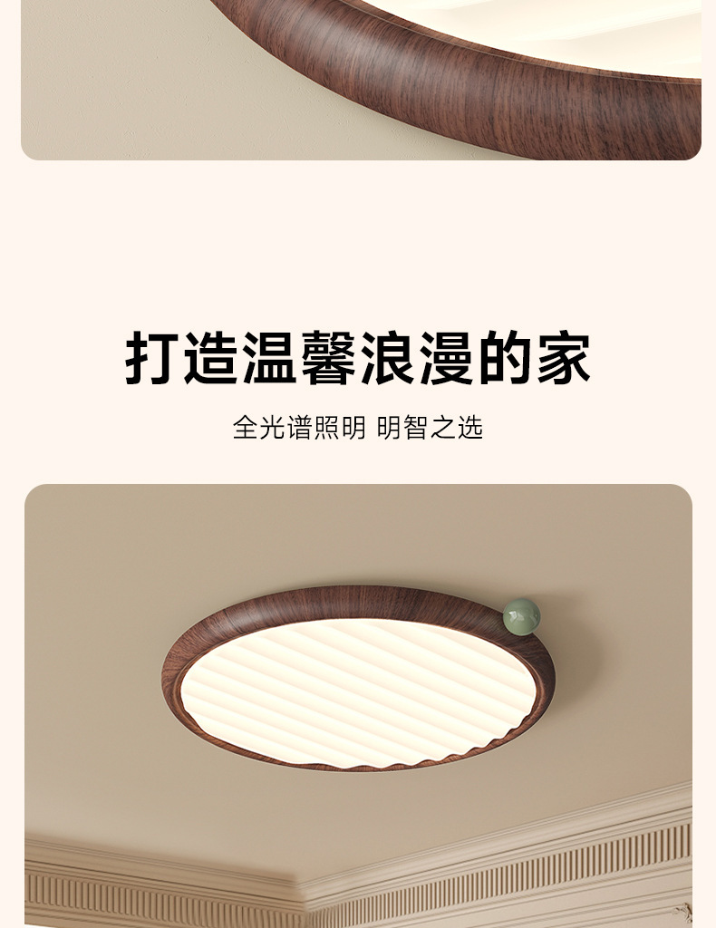 2025 새로운 중간 스타일 침실 천장 램프 크림 스타일 호두 컬러 작은 우유 콩 전체 스펙트럼 눈 보호 침실 램프스토어 가기