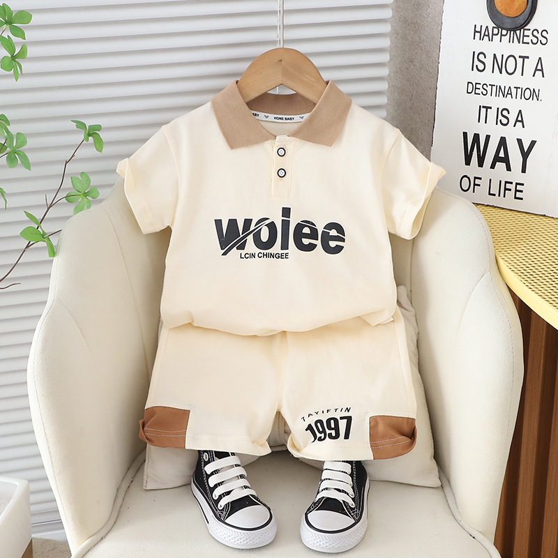 대외 무역 아동복 여름 2025 새로운 국경 어린이 여름 의류 도매 편지 폴로 셔츠 스포츠 남녀 어린이 세트스토어 가기