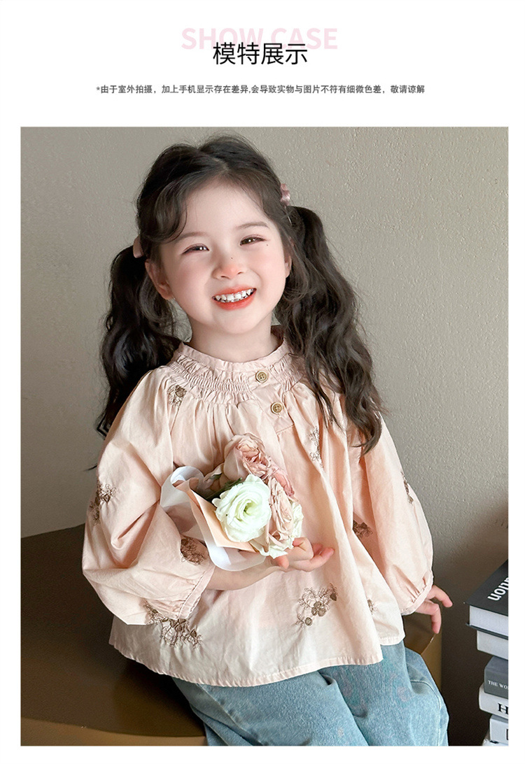 소녀의 셔츠 봄과 가을 2025 새로운 아기의 슈퍼 아름다운 봄 원피스 소녀의 봄 서양식 유행 자수 인형 셔츠스토어 가기