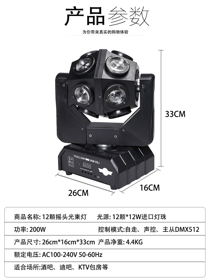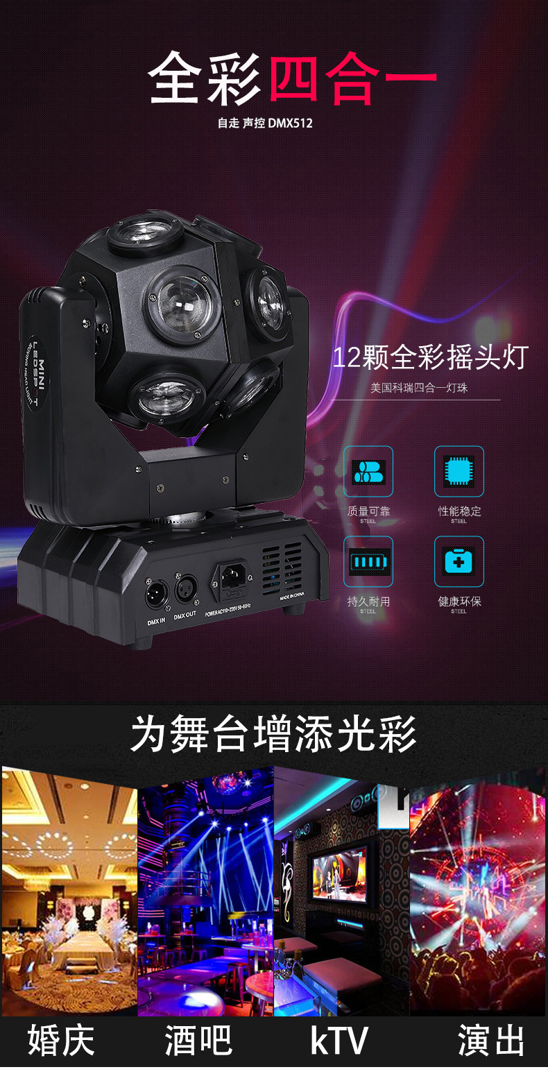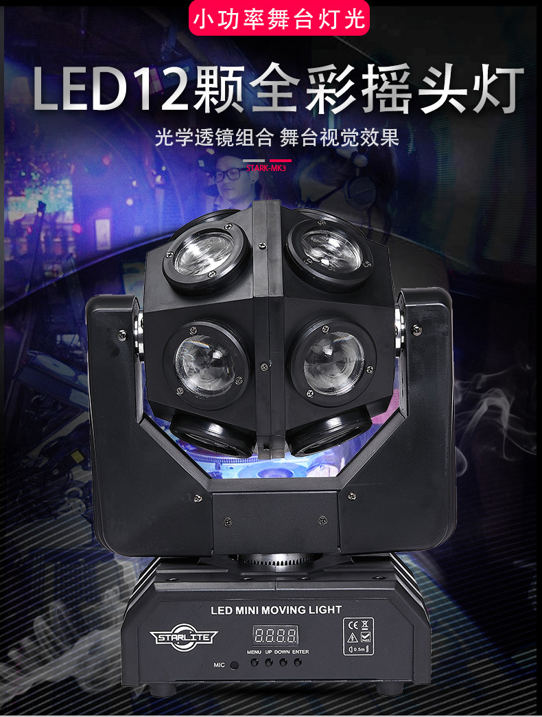 12개의 회전형 다채로운 조명, 무대 조명 빔, 동적 매직 볼 라이트, 가족 파티, 디스코 라이트 쇼, 강한 빛
