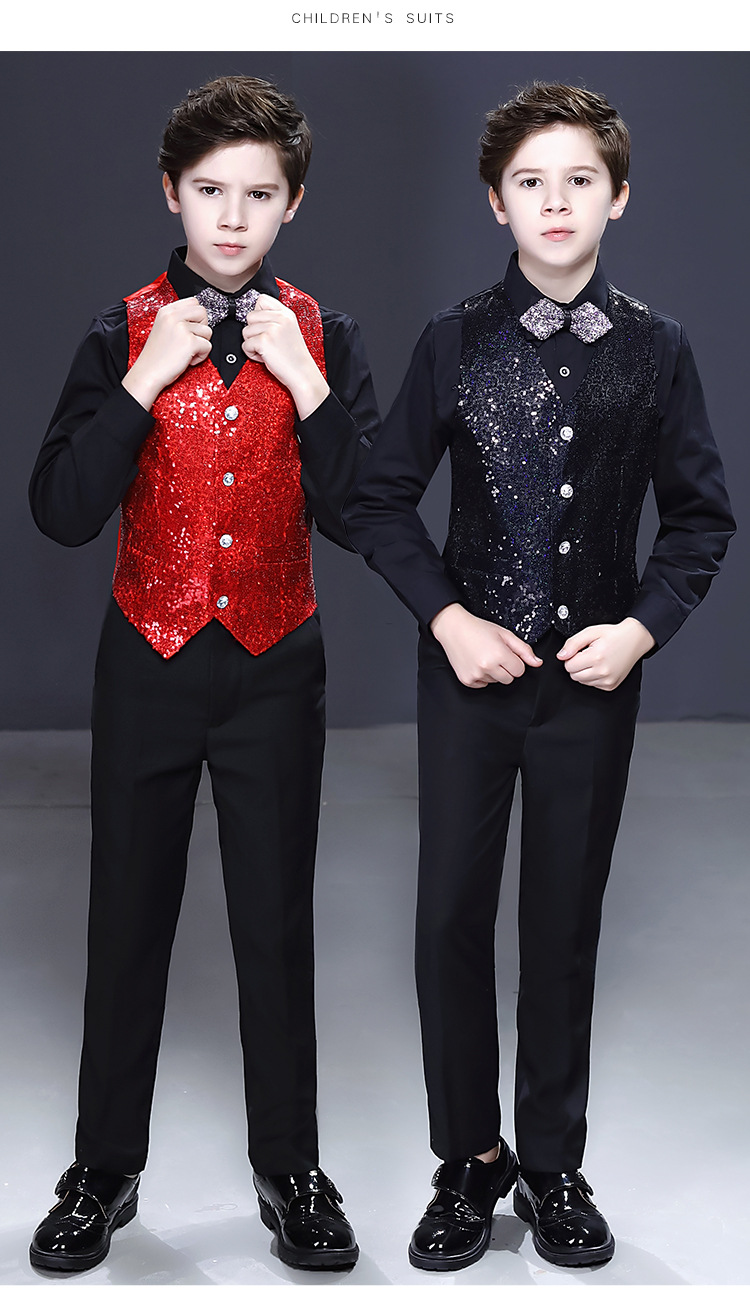 • 레드 스팽글 조끼 + 셔츠 + 바지 + 나비 넥타이