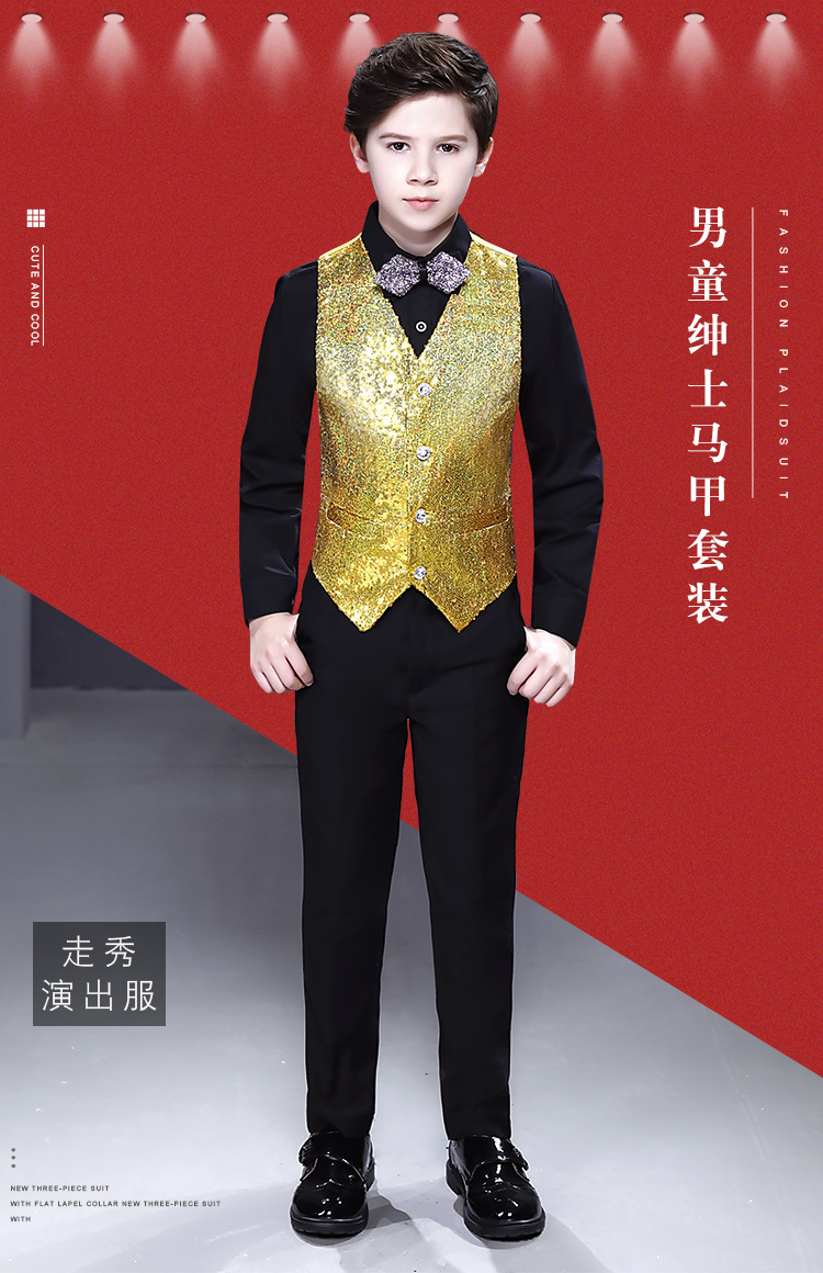 소년 합창단 작은 세트 속편 조끼 잘 생긴 어린이 세트 쇼 피아노 공연 세트 작은 호스트 원피스스토어 가기