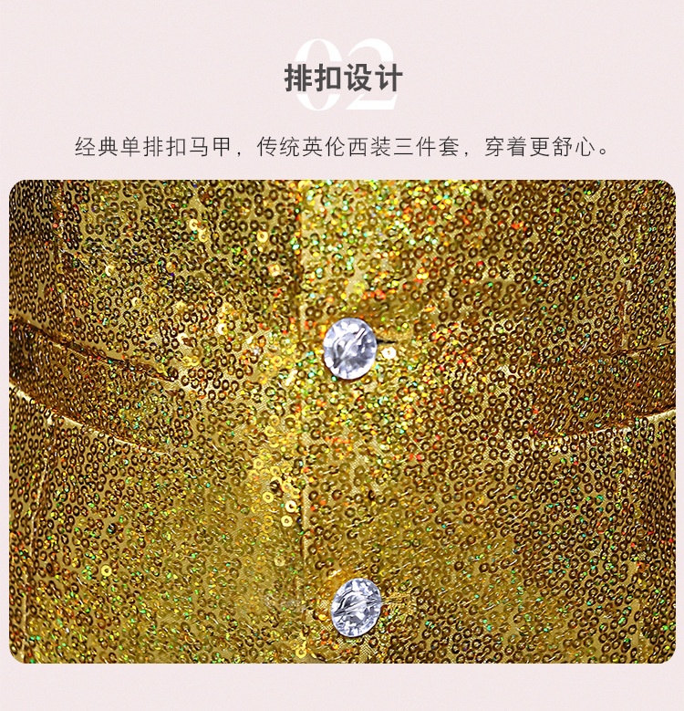 • 골드 스팽글 조끼 + 나비 넥타이 + 셔츠 + 바지