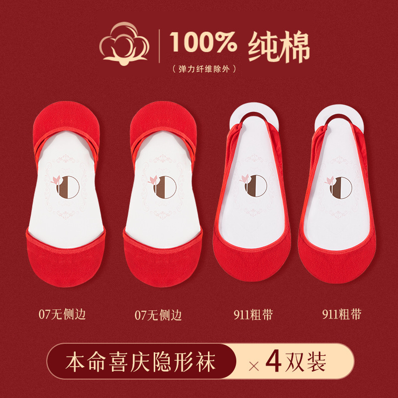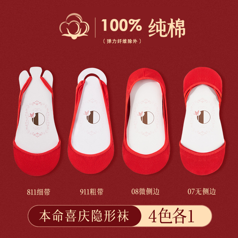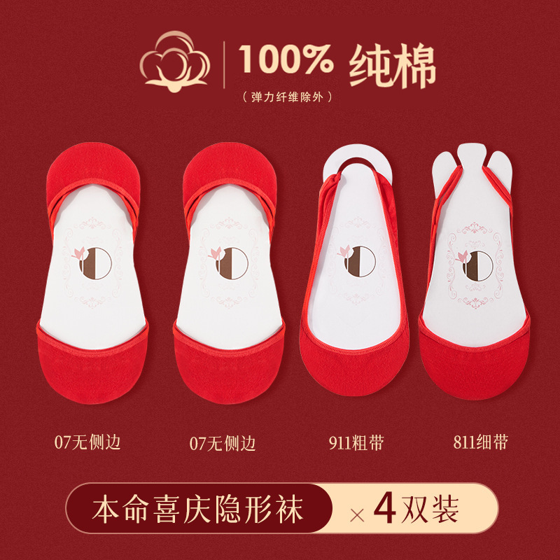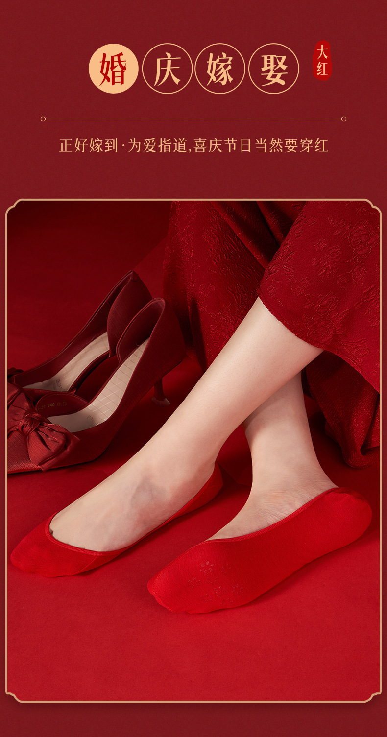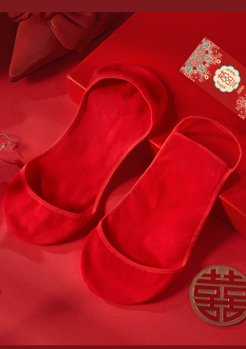 웨딩 신부 얕은 입 보트 양말, 보이지 않는 슈퍼 하프 팜 양말 양말 올해 레드 양말 하이힐스토어 가기