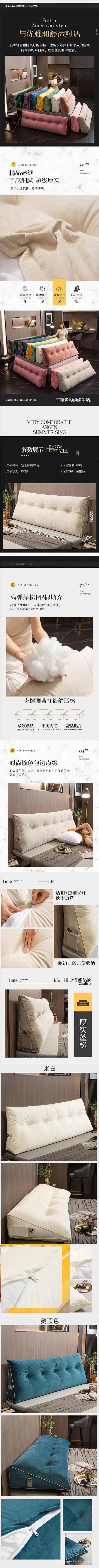 삼각형 침대 머리받침 쿠션, 더블 등받이, 허리 보호용 소프트 패드, 소파 침실용 플러시 탈부착 가능