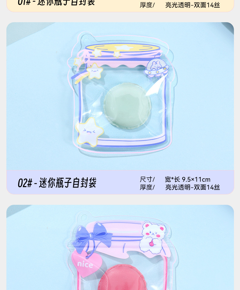 만화 미니 귀여운 유니버설 셀프 실링 백 투명 스낵 쿠키 장난감 보관 가방 국경 선물 가방