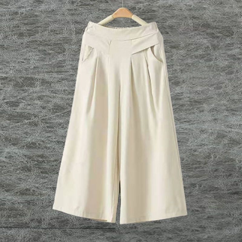 여름 스트레이트 리넨 넓은 다리 바지 여성용 빈티지 높은 허리 주름 느슨한 플러스 사이즈 얇은 코튼 리넨 캐주얼 바지스토어 가기