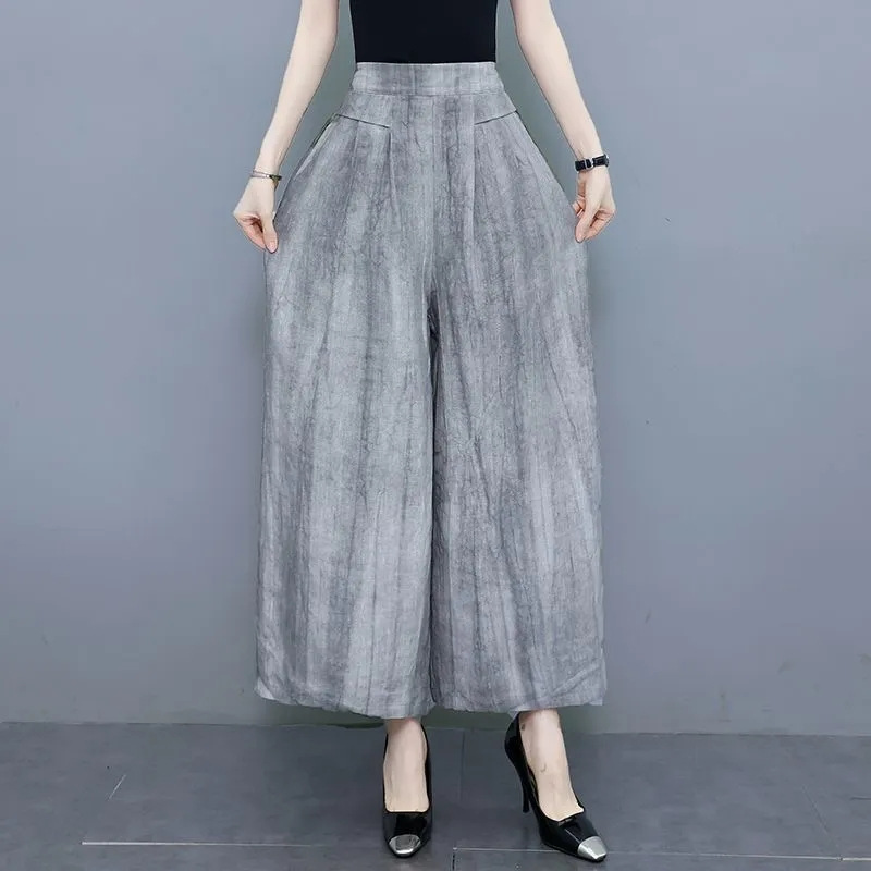 여름 스트레이트 리넨 넓은 다리 바지 여성용 빈티지 높은 허리 주름 느슨한 플러스 사이즈 얇은 코튼 리넨 캐주얼 바지