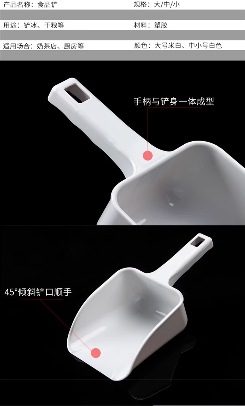 얼음 삽을 두껍게 한 큰 삽 304 스테인레스 스틸 우유 차 가게 평평한 밀가루 설탕 식품 사료 쌀 삽 플라스틱 숟가락