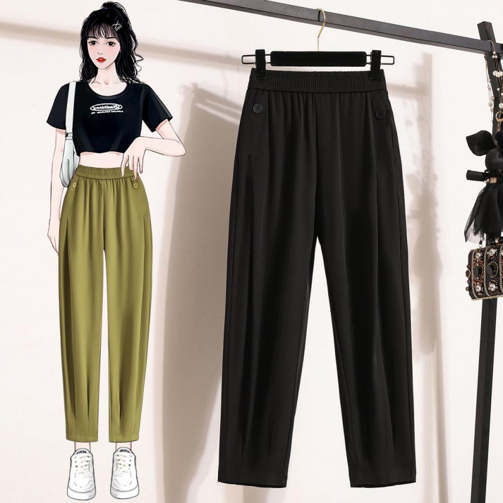 새로운 하이 엔드 얇은 스트레이트 다리 바지 어머니의 바지 여름 탄성 외부 캐주얼 바지 높은 허리 슬림 핏 여성용 바지