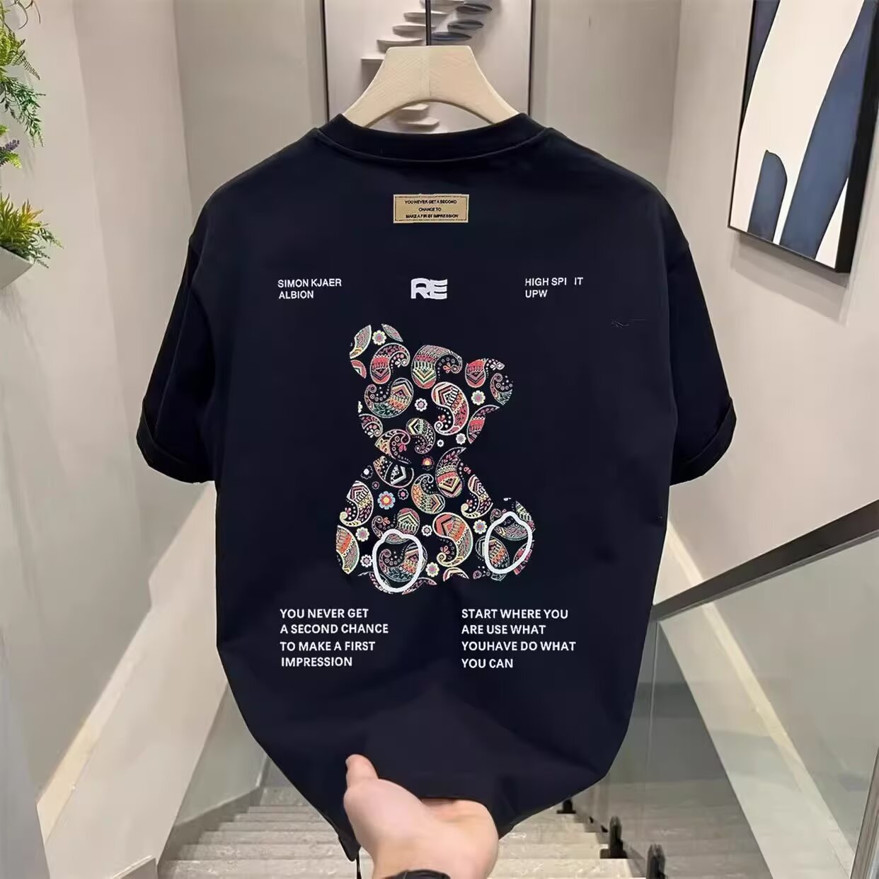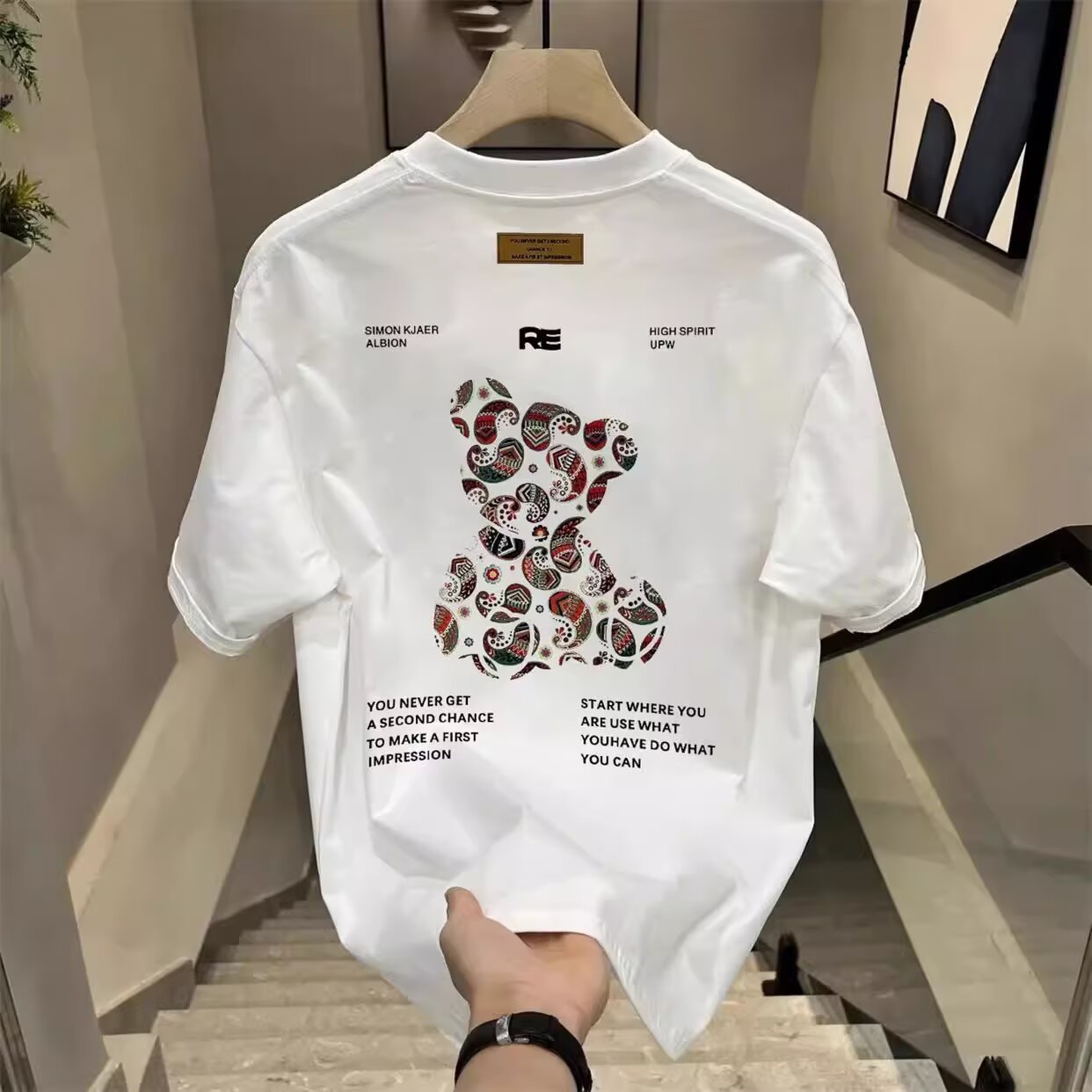 2025 새로운 헤비 트렌디 브랜드 퓨어 코튼 프린트 남성용 반팔 티셔츠 여름 폭발 유행 캐주얼 크루 넥 티셔츠