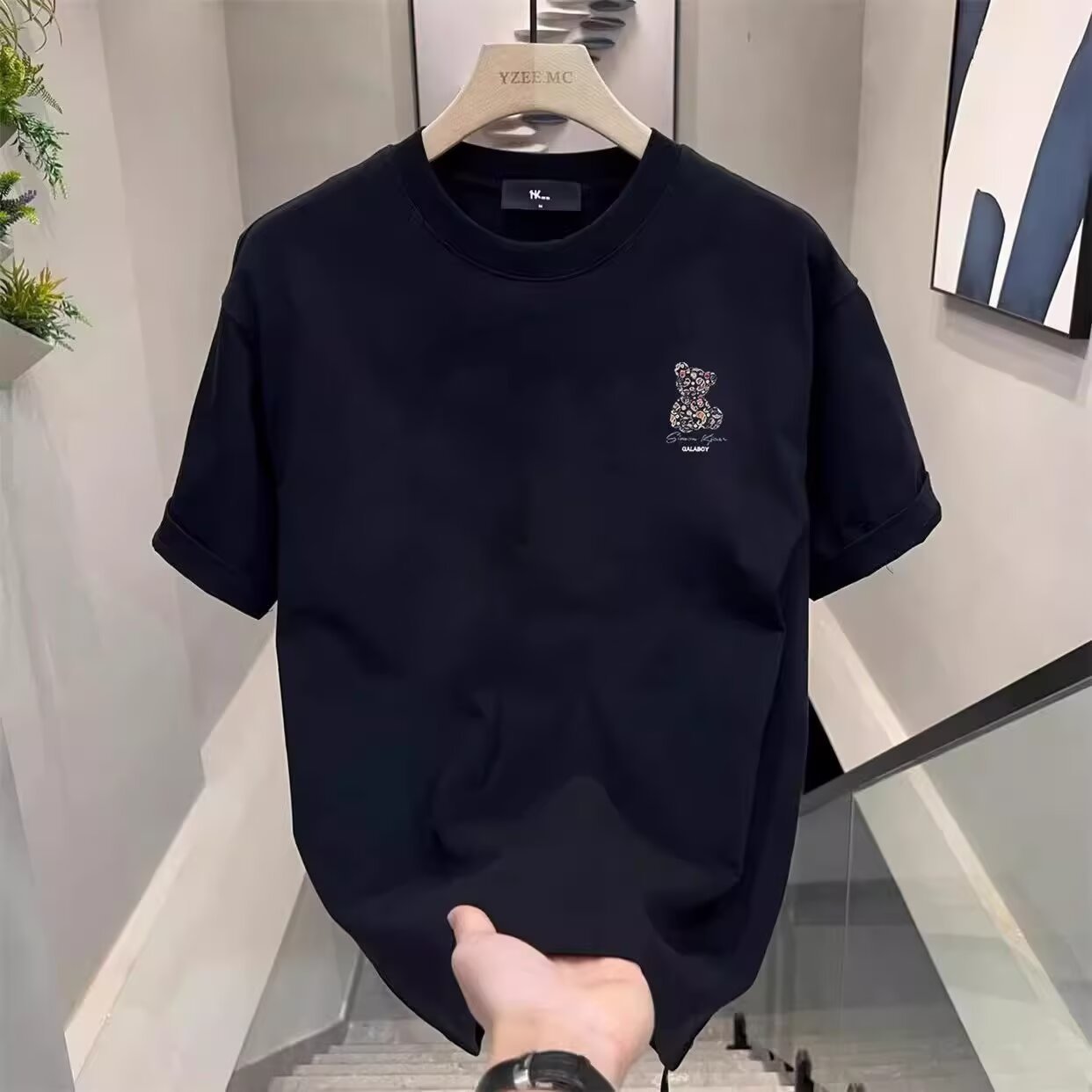 2025 새로운 헤비 트렌디 브랜드 퓨어 코튼 프린트 남성용 반팔 티셔츠 여름 폭발 유행 캐주얼 크루 넥 티셔츠스토어 가기