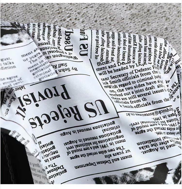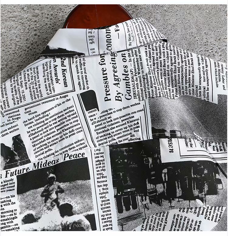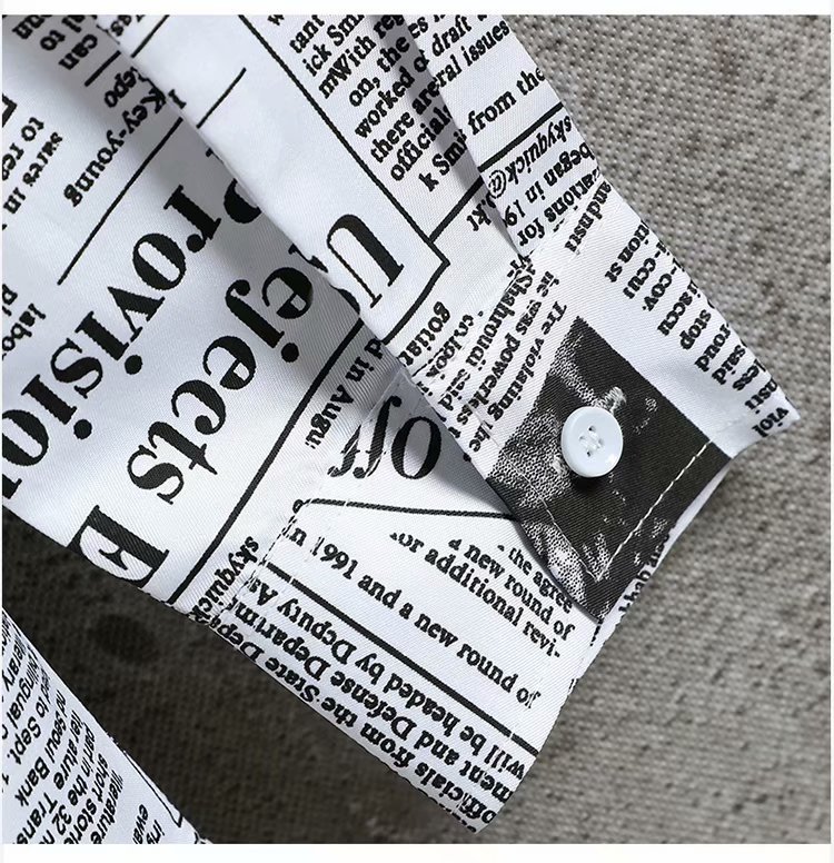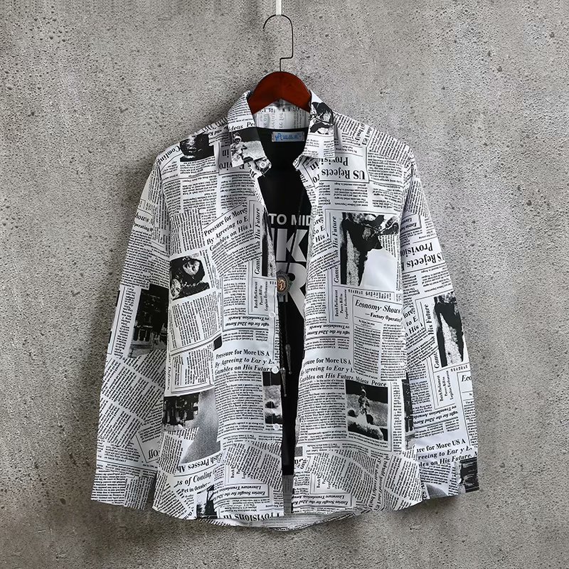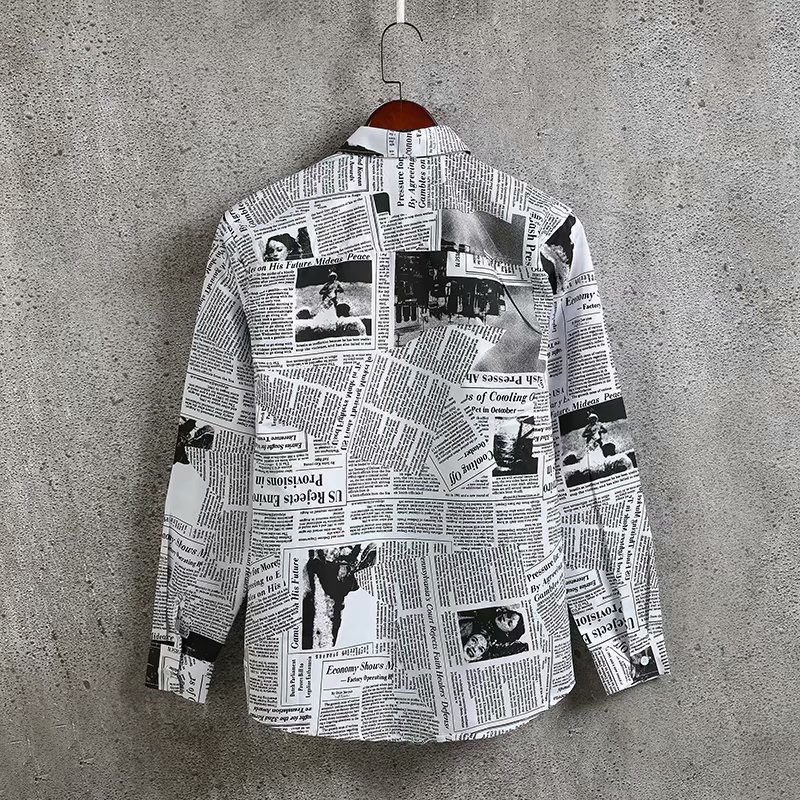 가을 새로운 패션 신문 인쇄 긴 소매 셔츠 남자의 하라주쿠 스타일 유행 홍콩 스타일 느슨한 긴 소매 라이닝