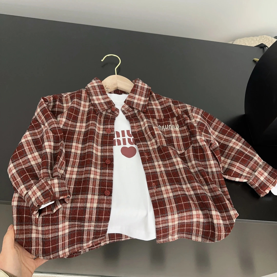 소년 격자 무늬 셔츠 코트 2025 봄과 가을 새로운 어린이 T 스타일 한국식 소년 셔츠 티셔츠 올매치스토어 가기