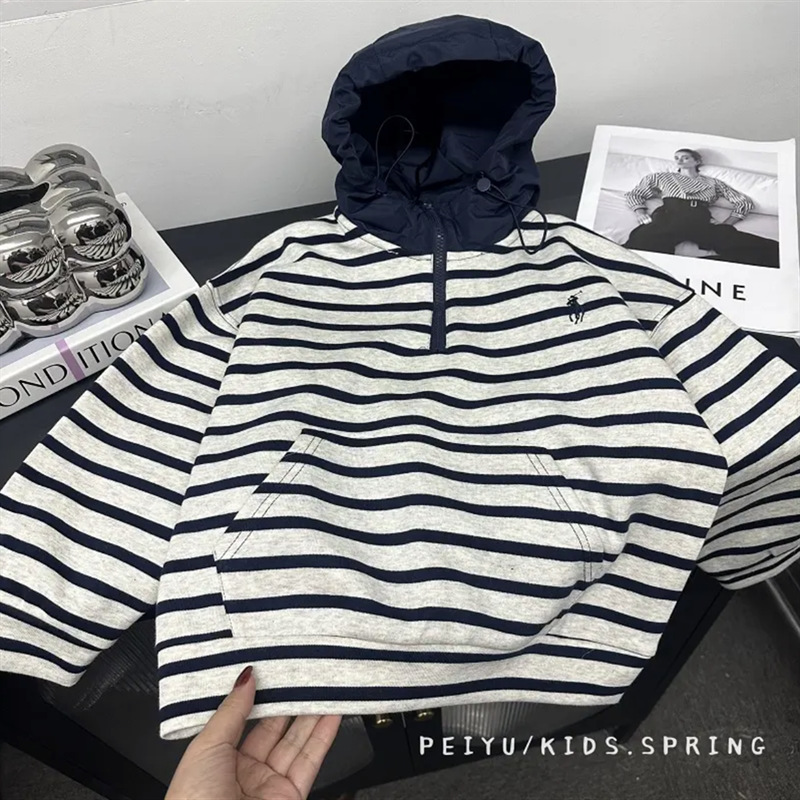 재고 있음! 아동용 스트라이프 스웨트셔츠 2025 봄 신상 트렌디한 한국 스타일 미국 스타일 다용도 루즈핏 남녀공용 상의