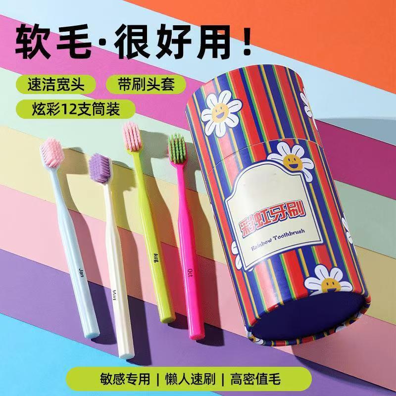 [머리카락 한 조각] 흔들리는 톤 타오바오 폭발 무지개 칫솔 높은 색 가치 도파민 부드러운 머리 성인 청소 칫솔스토어 가기