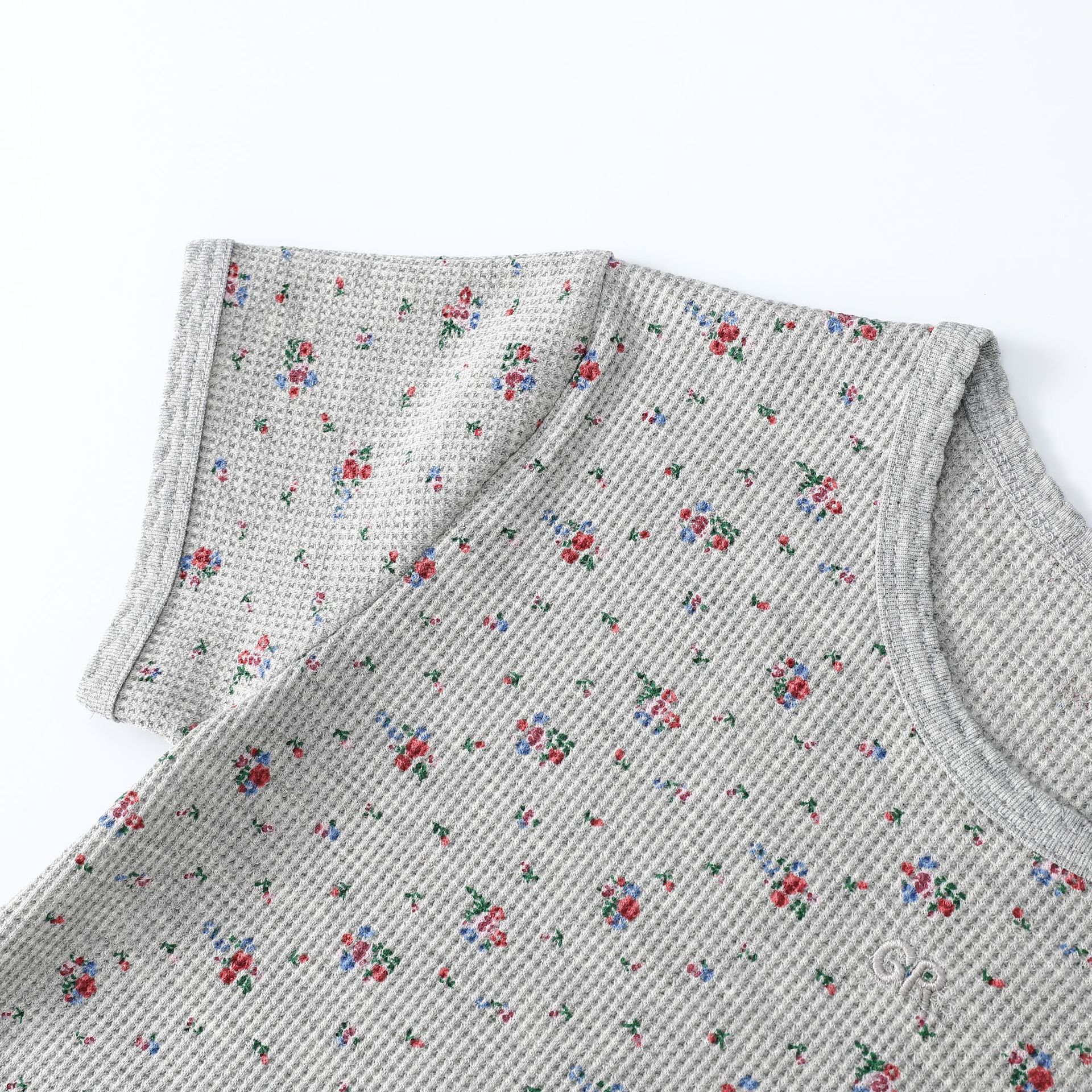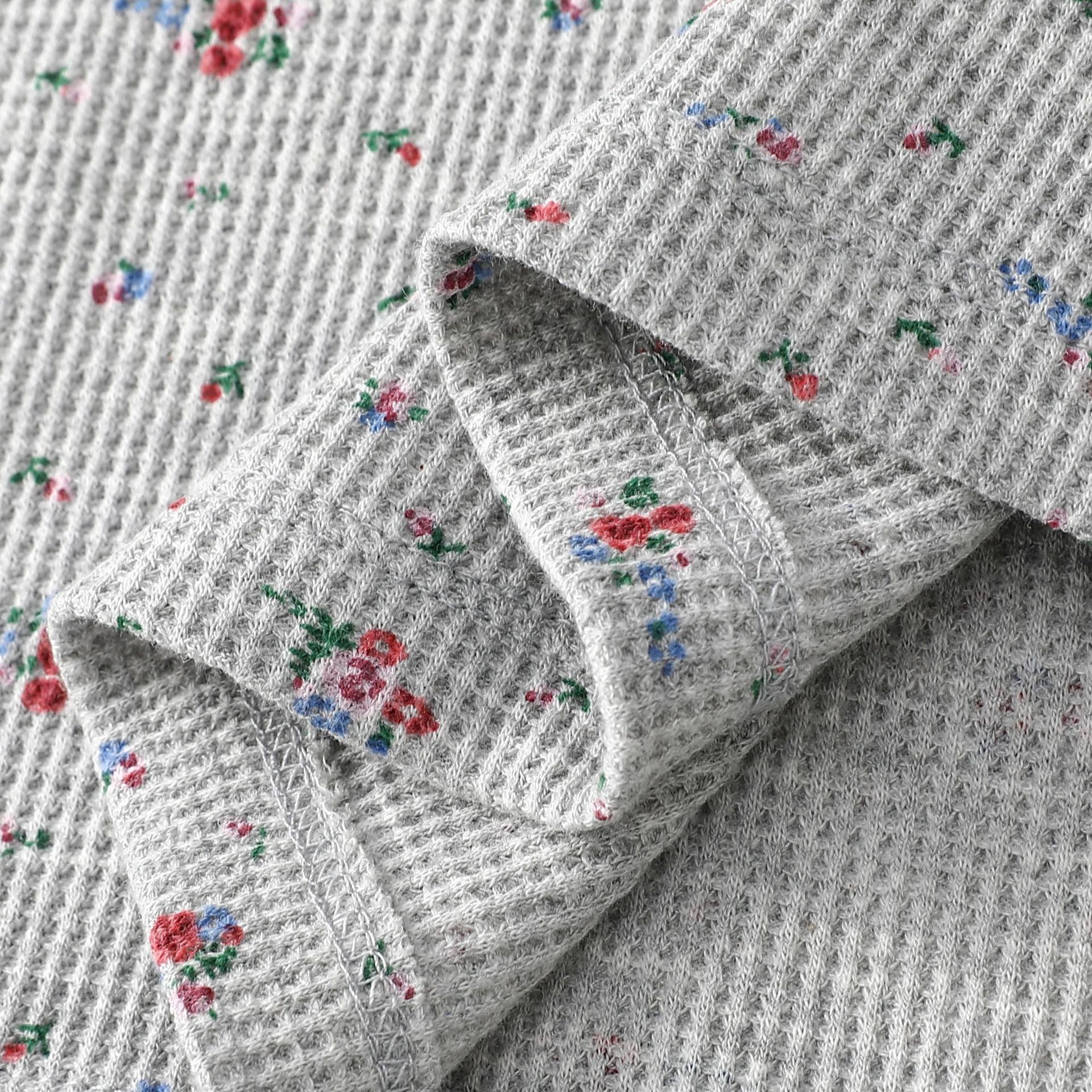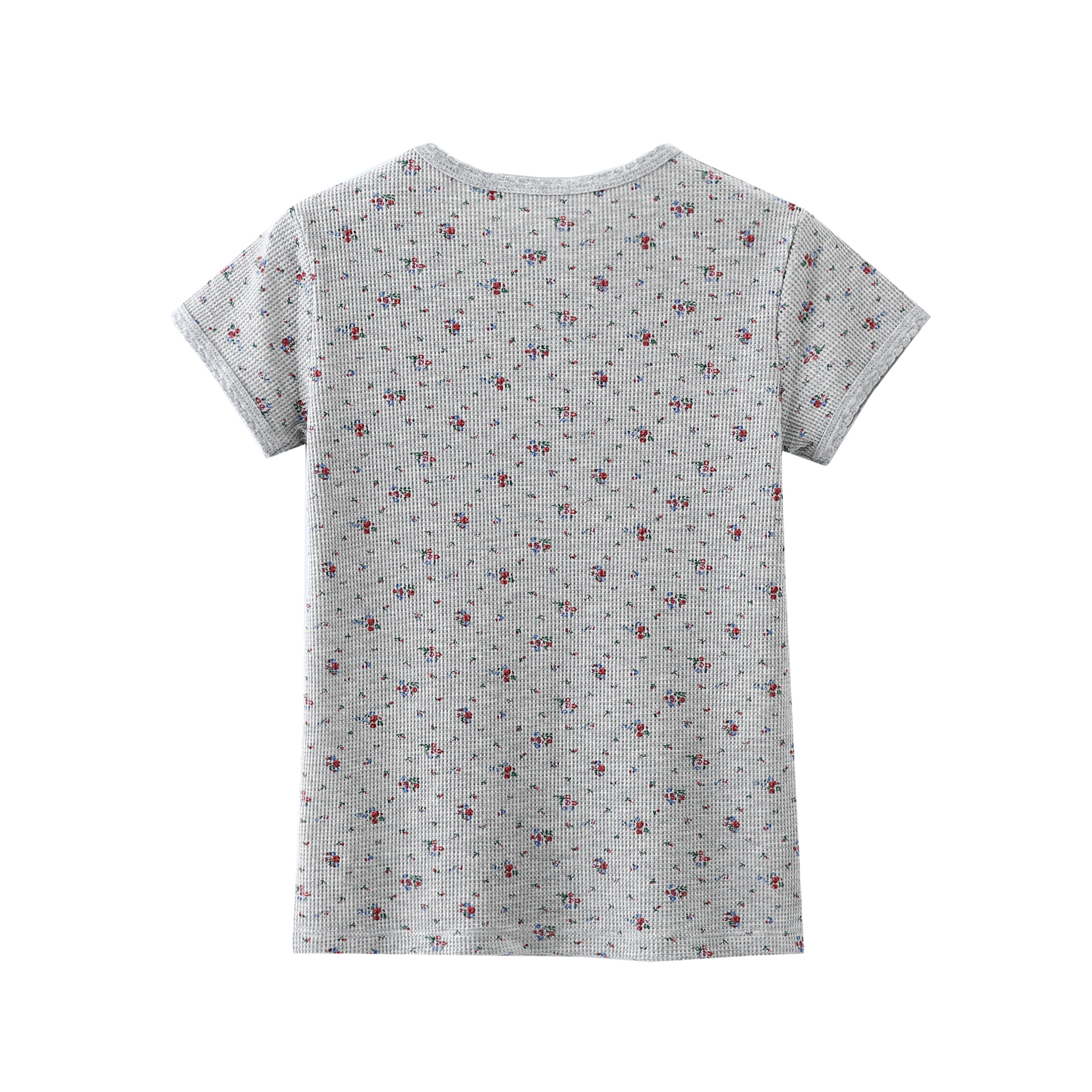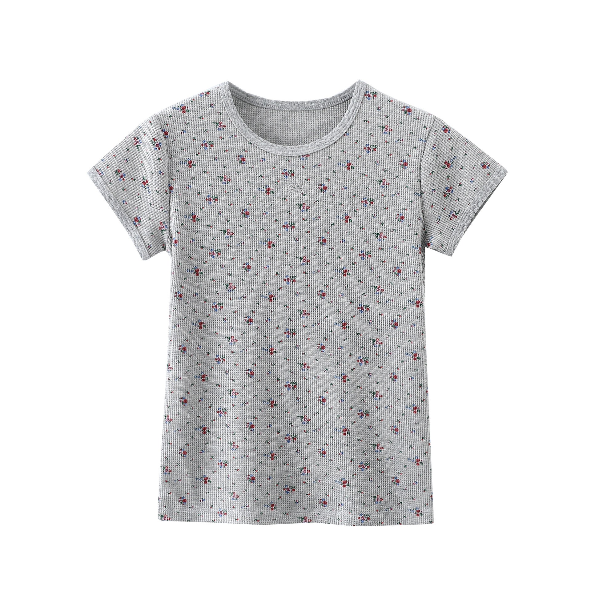 빈티지 신선한 작은 꽃 반팔 티셔츠 여성용 2025 년 봄과 여름 새로운 슬림 핏 슬리밍 와플렛베이스 셔츠 탑