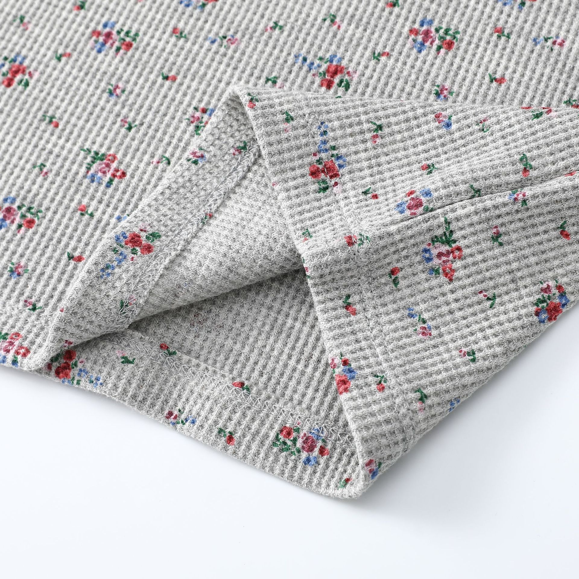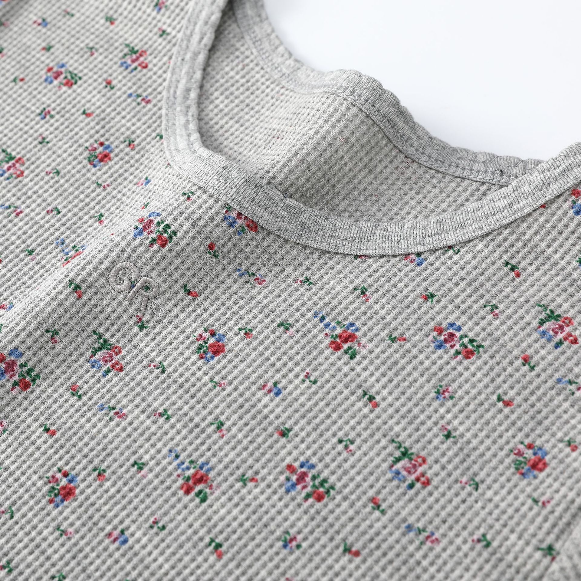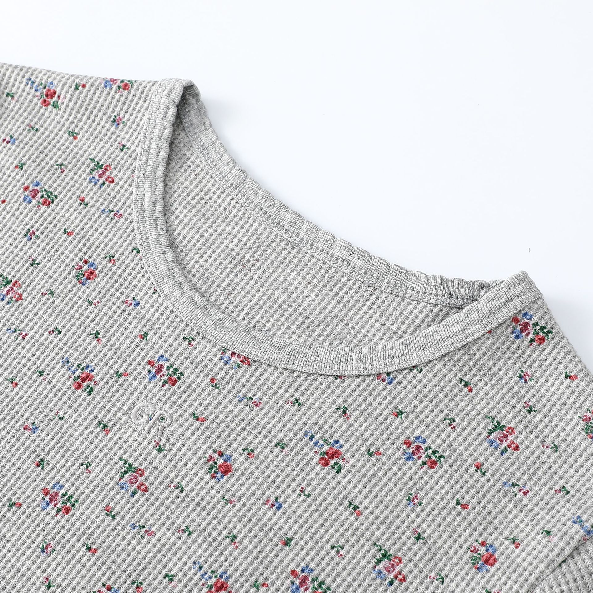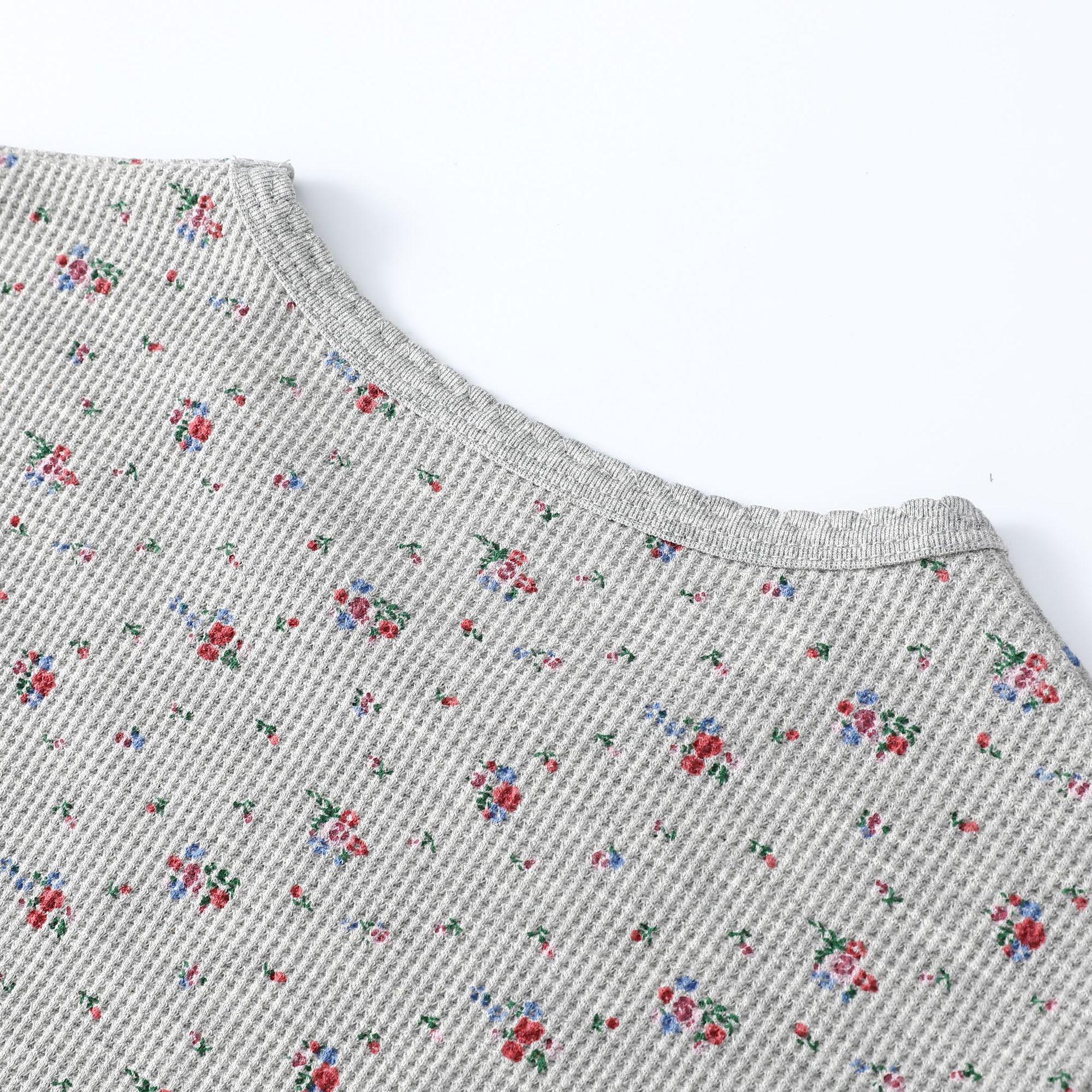 빈티지 신선한 작은 꽃 반팔 티셔츠 여성용 2025 년 봄과 여름 새로운 슬림 핏 슬리밍 와플렛베이스 셔츠 탑