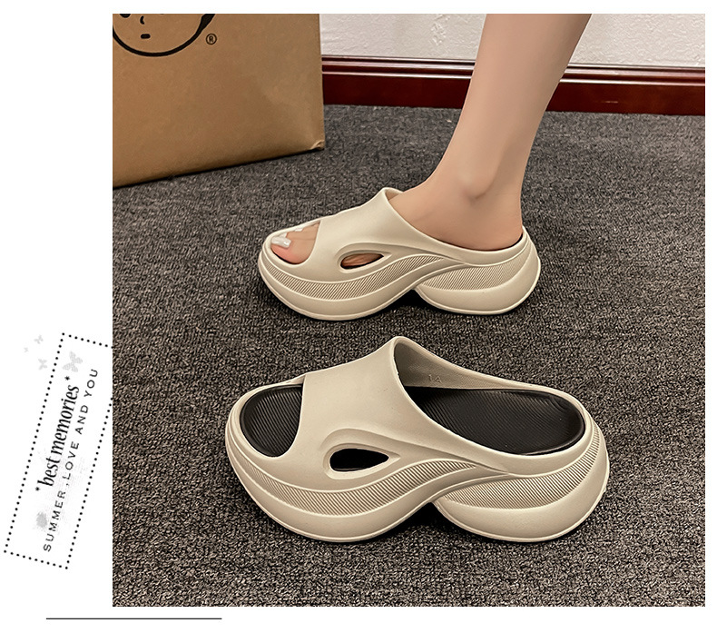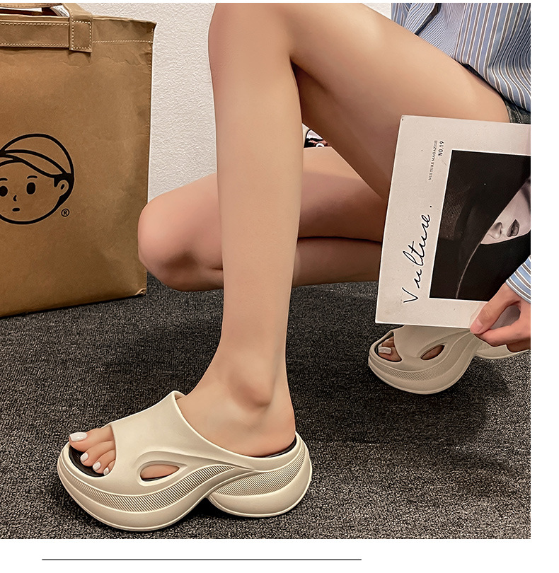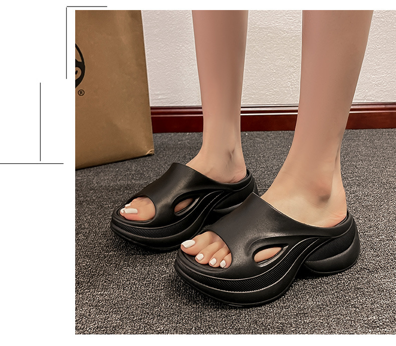 플랫폼 두꺼운 바닥 샌들 및 여성용 외부 착용 2025 봄 및 여름 새로운 똥 느낌 작은 높이 증가 비치 슬라이드스토어 가기