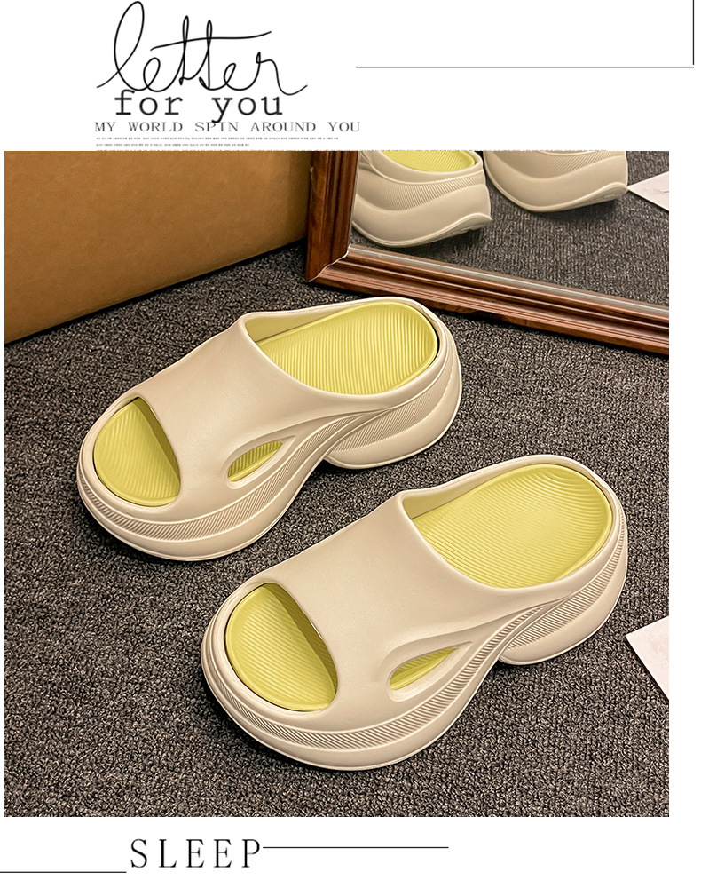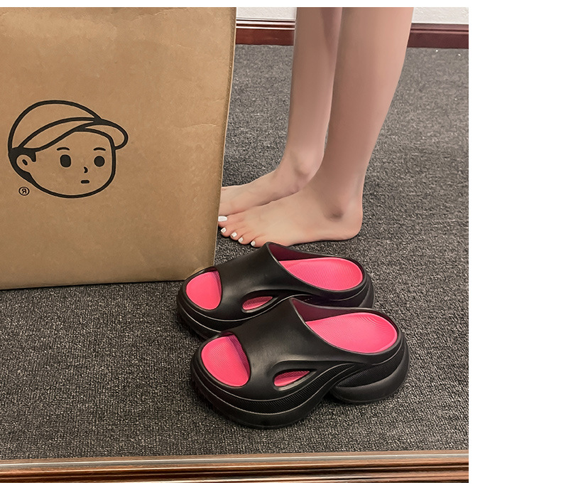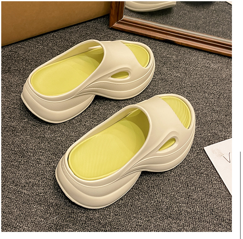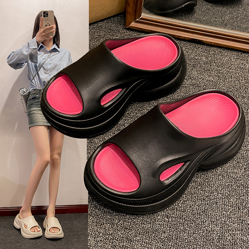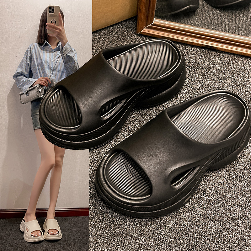 플랫폼 두꺼운 바닥 샌들 및 여성용 외부 착용 2025 봄 및 여름 새로운 똥 느낌 작은 높이 증가 비치 슬라이드