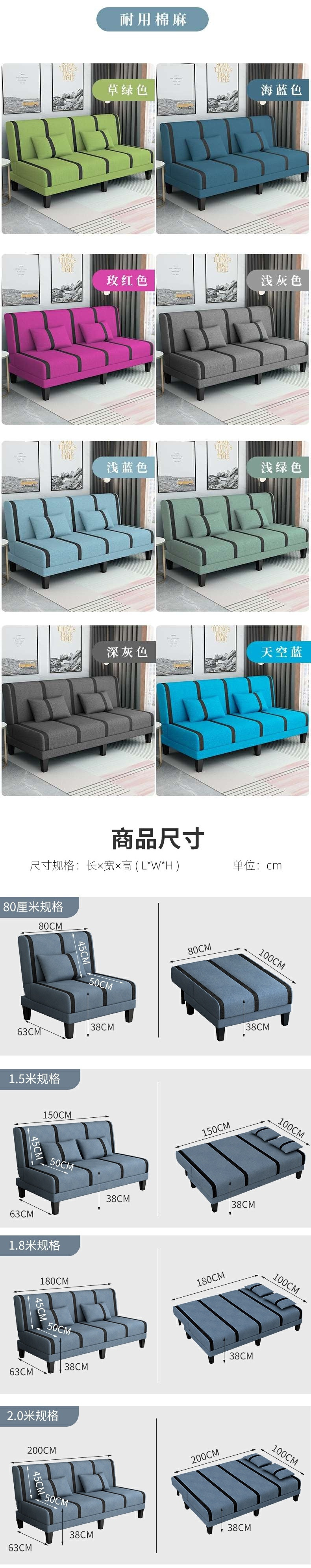 접이식 소파베드, 2인용/3인용, 다기능, 임대방 침실, 거실용, 패브릭 소재, 소형 아파트용스토어 가기