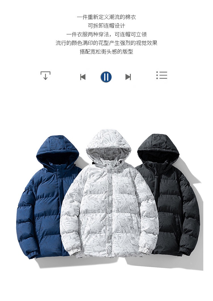 코튼 의류 남성용 가을과 겨울 따뜻한 패션 커플 코트 두꺼운 느슨한 위장 플러스 사이즈 남성용 캐주얼 후드 코튼 패딩 재킷