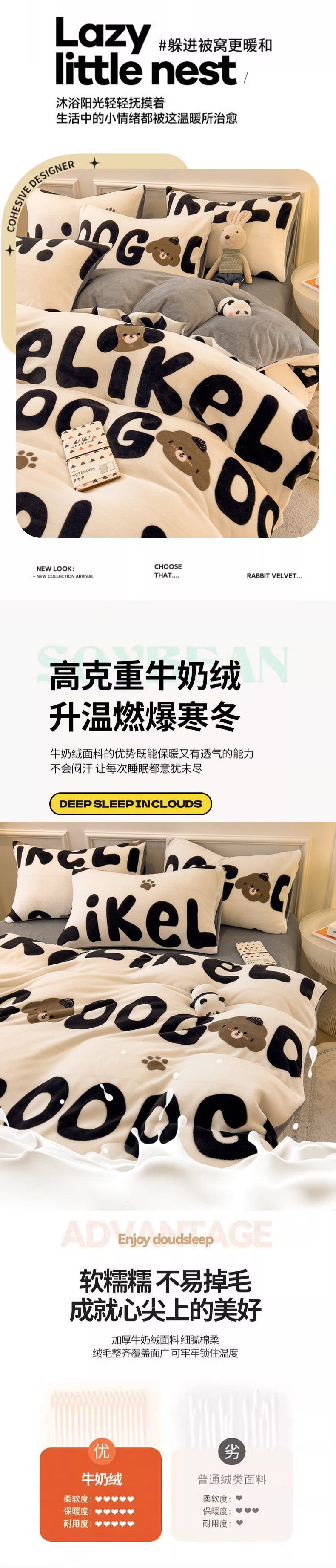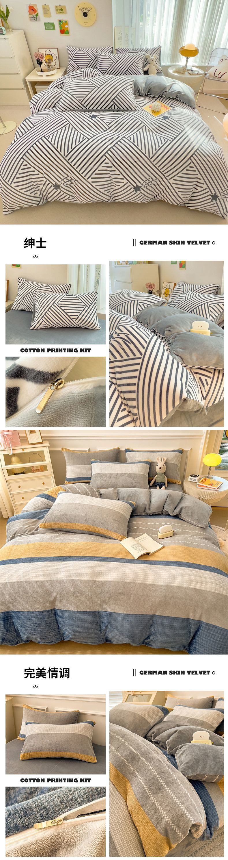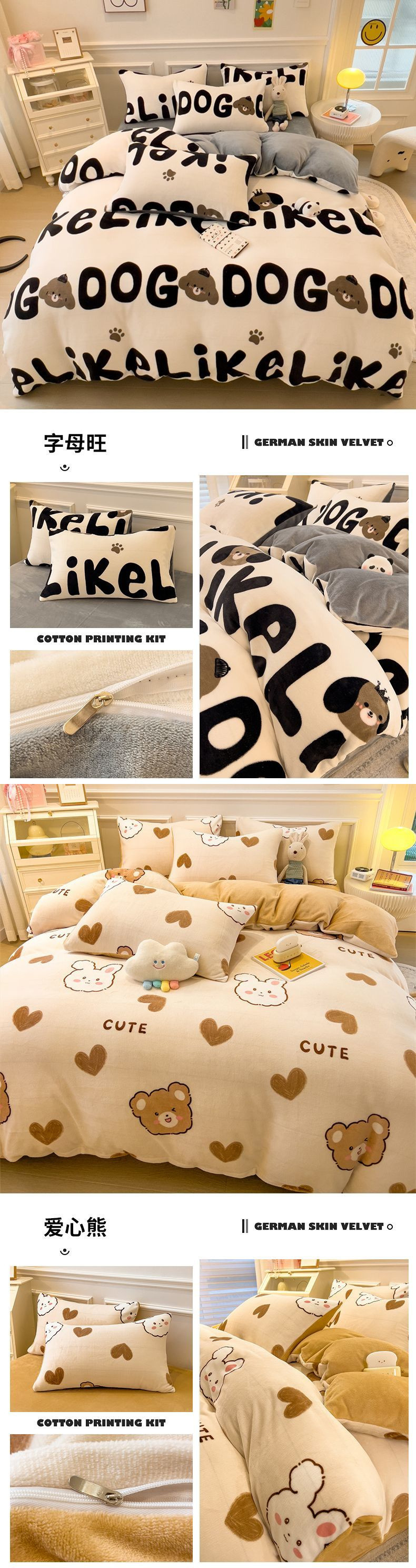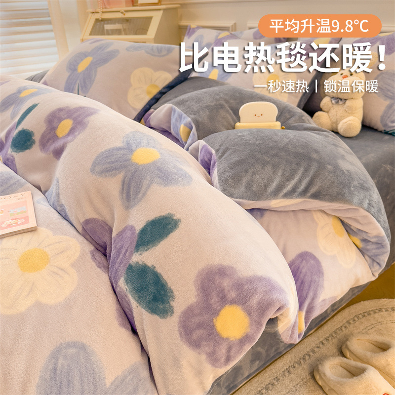 가을과 겨울 두꺼운 우유 벨벳 침대 4 피스 산호 벨벳 퀼트 커버 양면 플란넬 기모 침대 시트 3 피스 세트