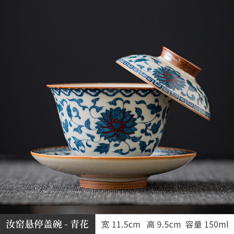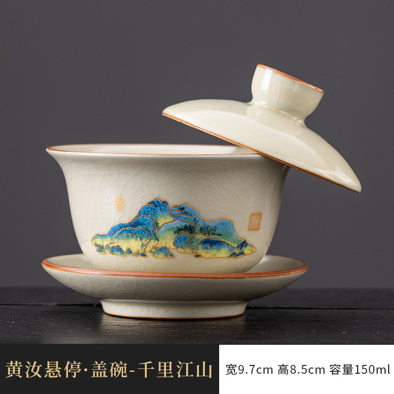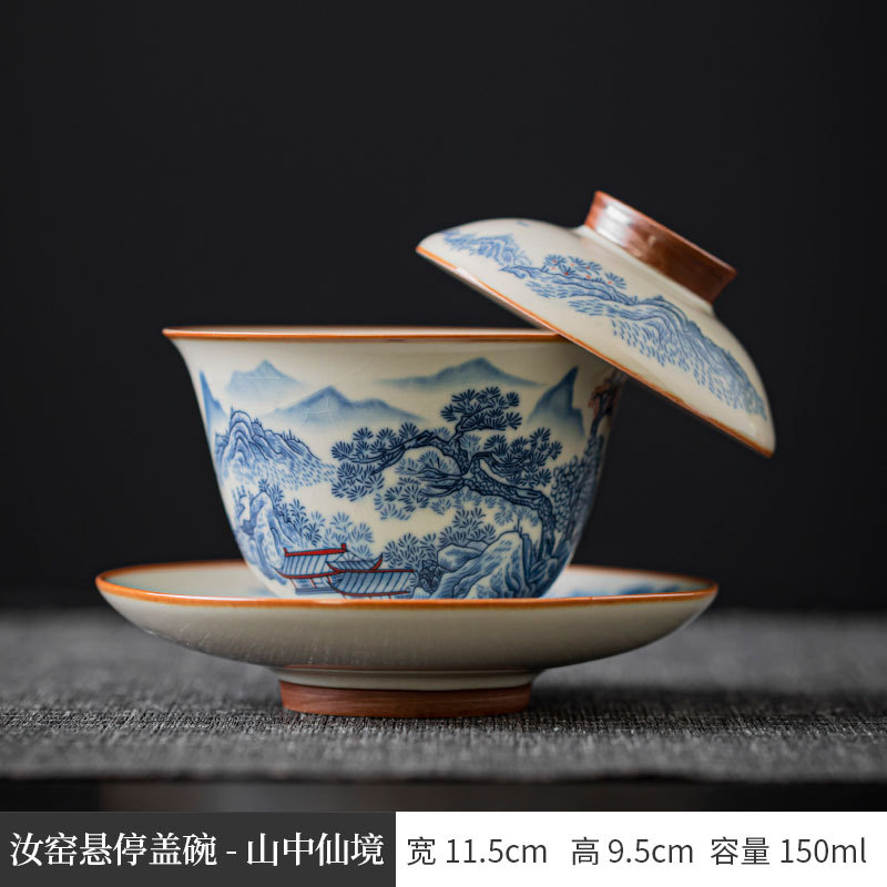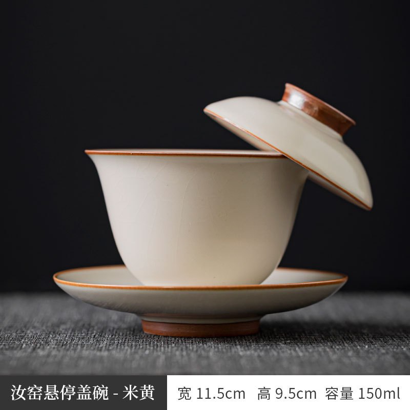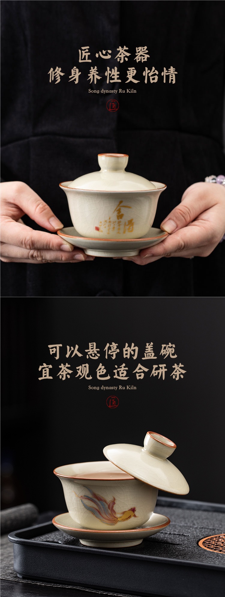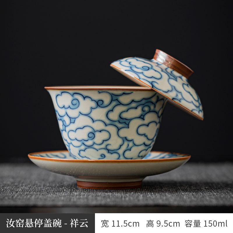Ru Kiln Sicai 커버 보울 호버 티 보울 싱글 핫 티 쿵푸 티 세트 가정용 세라믹 티 컵스토어 가기