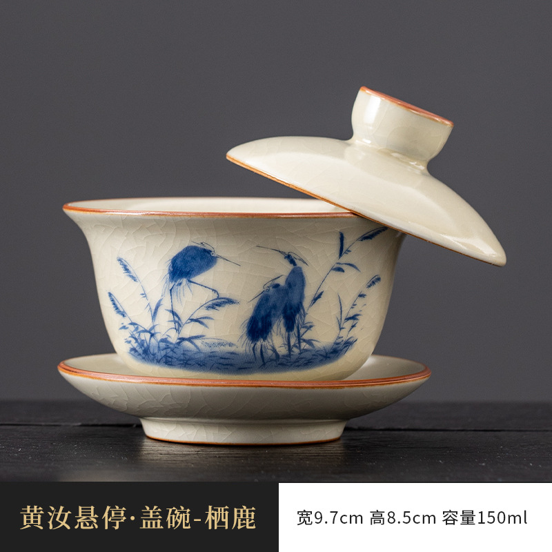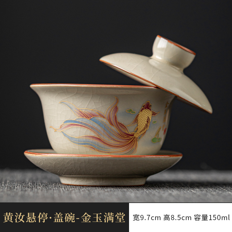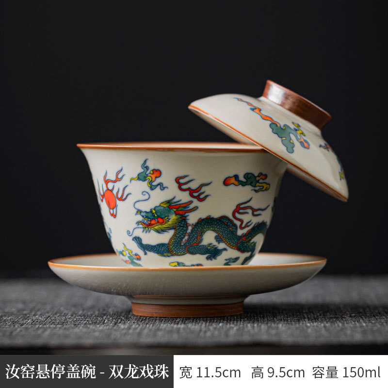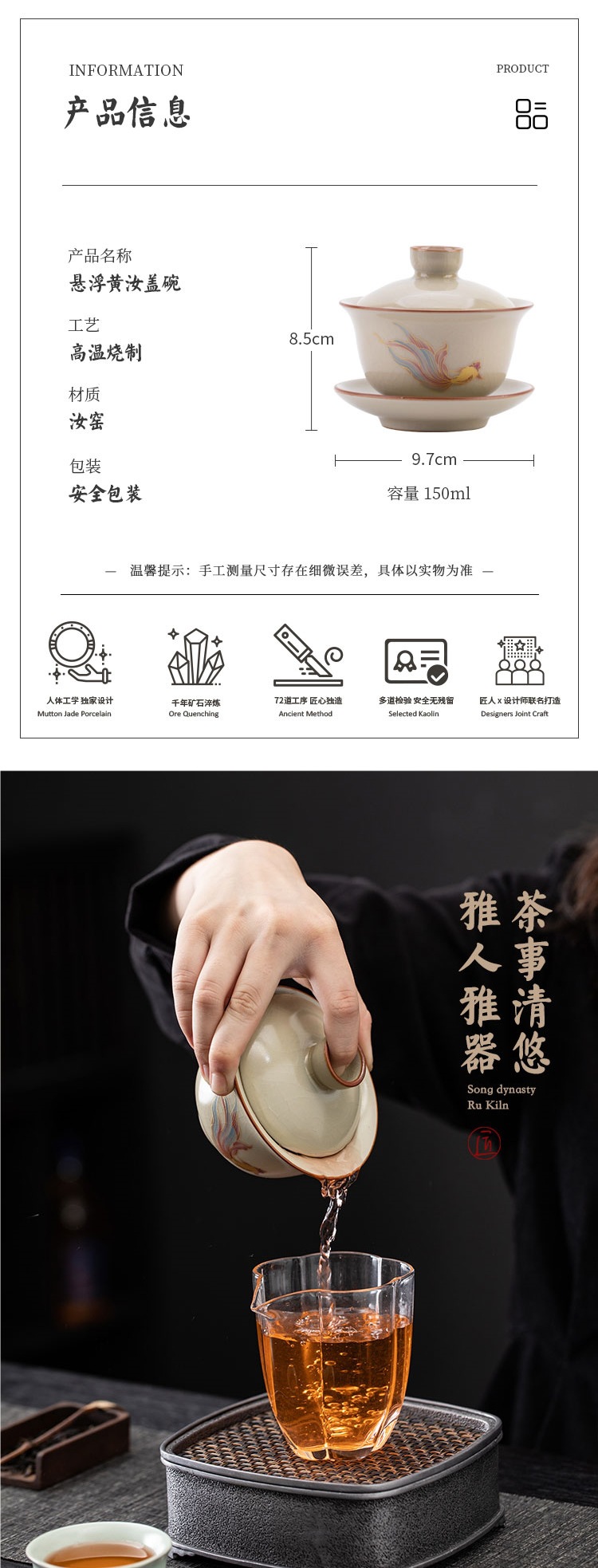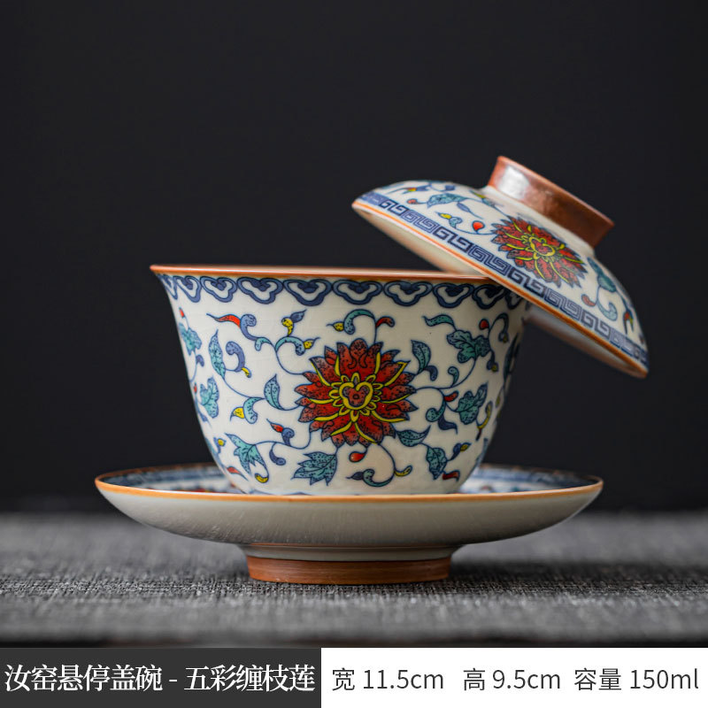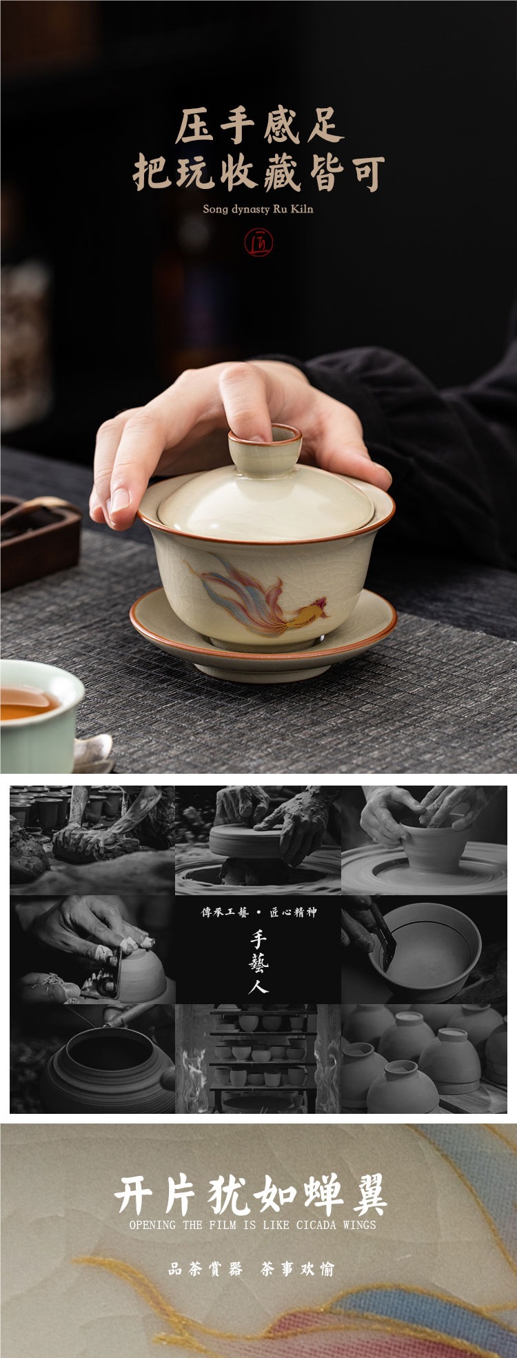 Ru Kiln Sicai 커버 보울 호버 티 보울 싱글 핫 티 쿵푸 티 세트 가정용 세라믹 티 컵스토어 가기