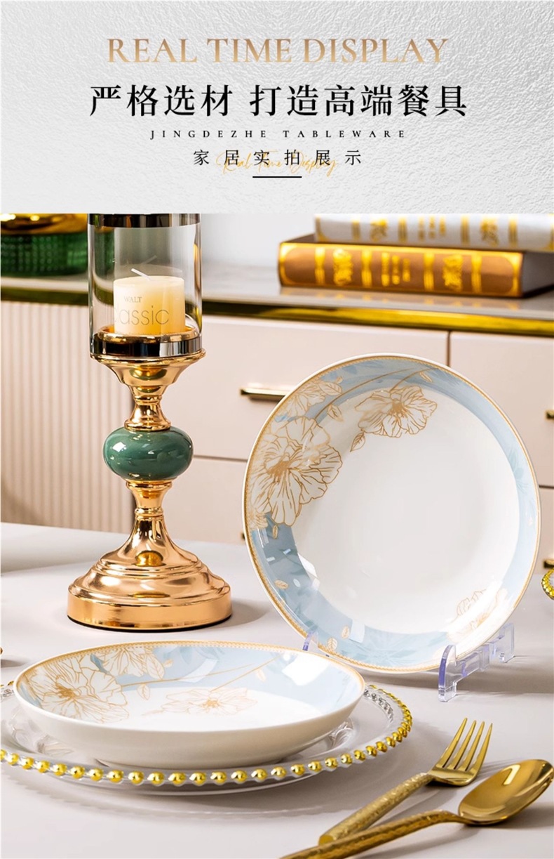 Jingdezhen 접시 접시 가정 2025 새로운 세라믹 쌀 접시 깊은 접시 창조적 인 접시 둥근 접시 식기
