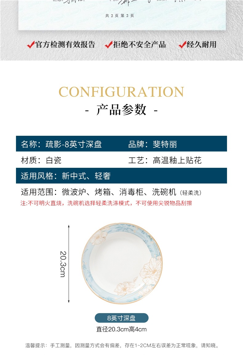 • 4 8inch 깊은 접시 [꽃이 만발한 | 가벼운 럭셔리함과 우아함]