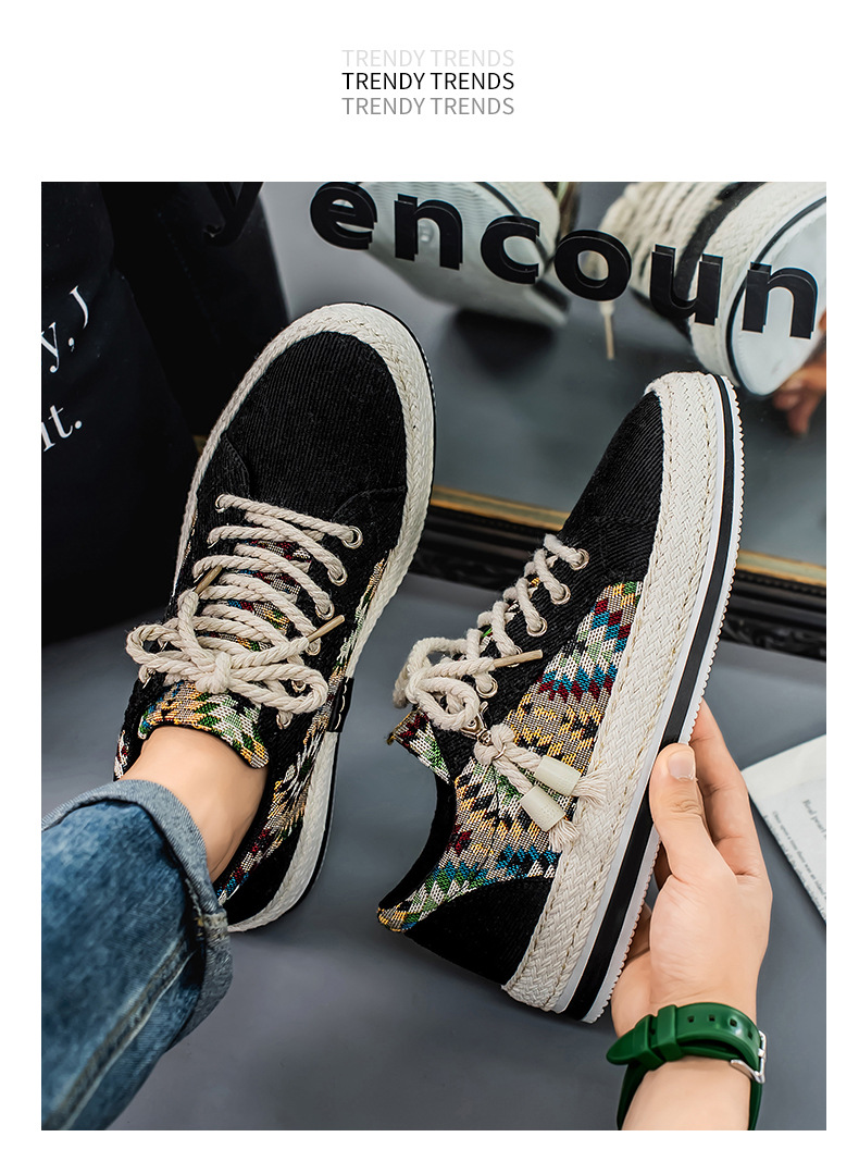 Corduroy 운동화 2025 봄과 여름 새로운 밀짚 남성 신발 캐주얼 패션 올 매치 어부 신발 로우 탑 캔버스 신발스토어 가기