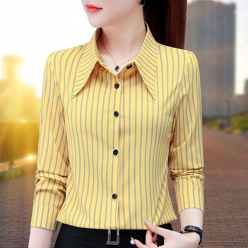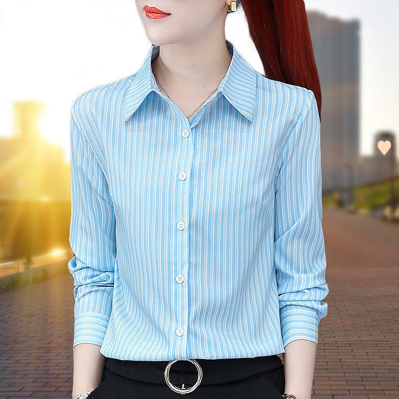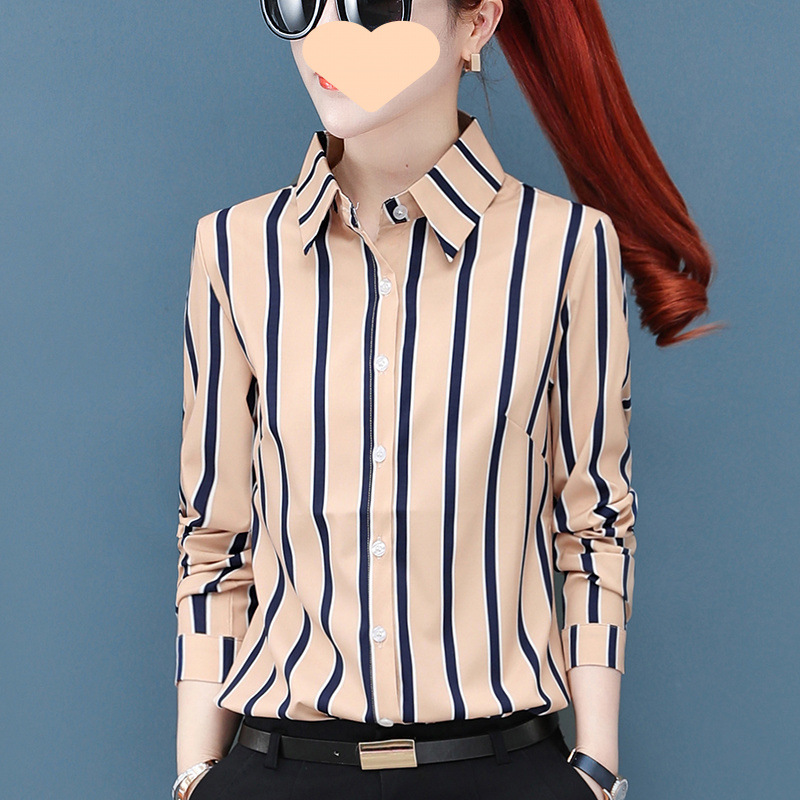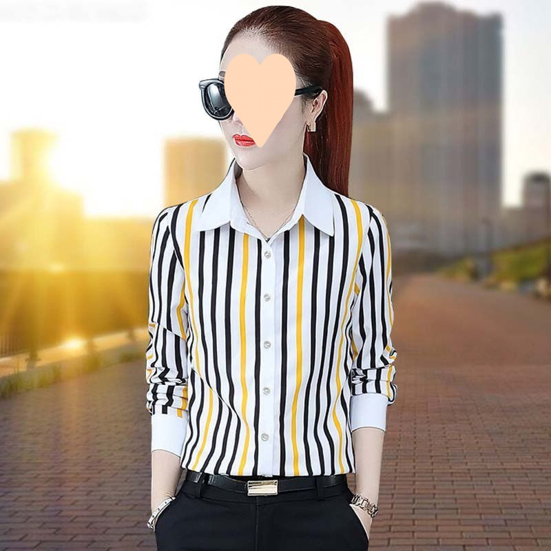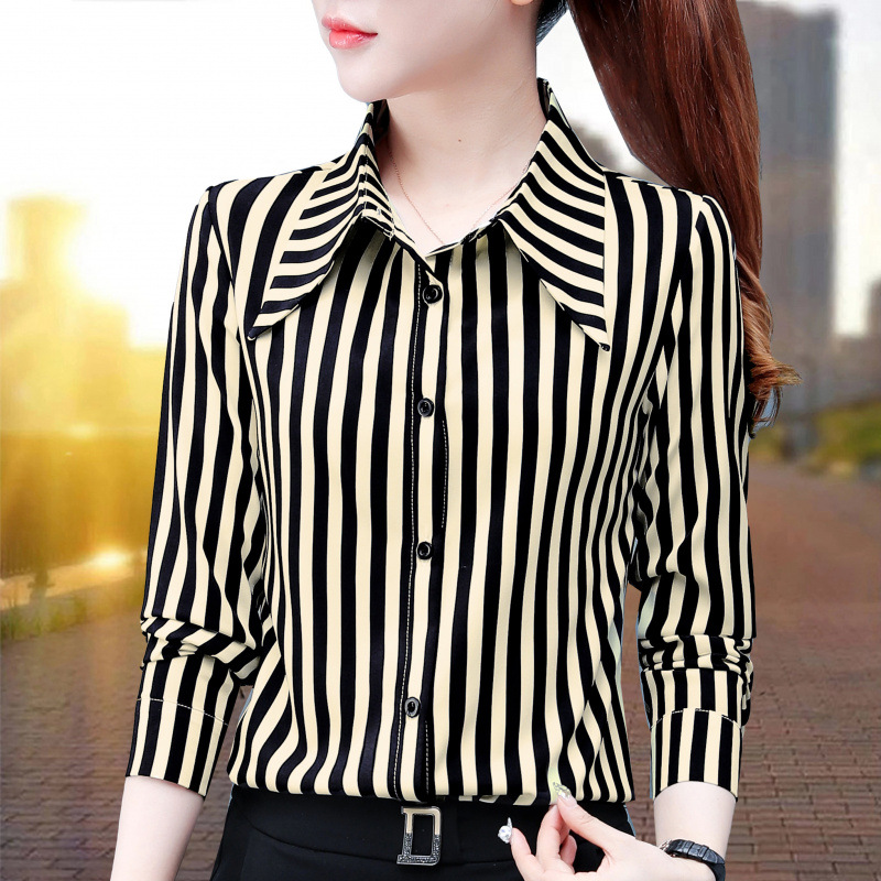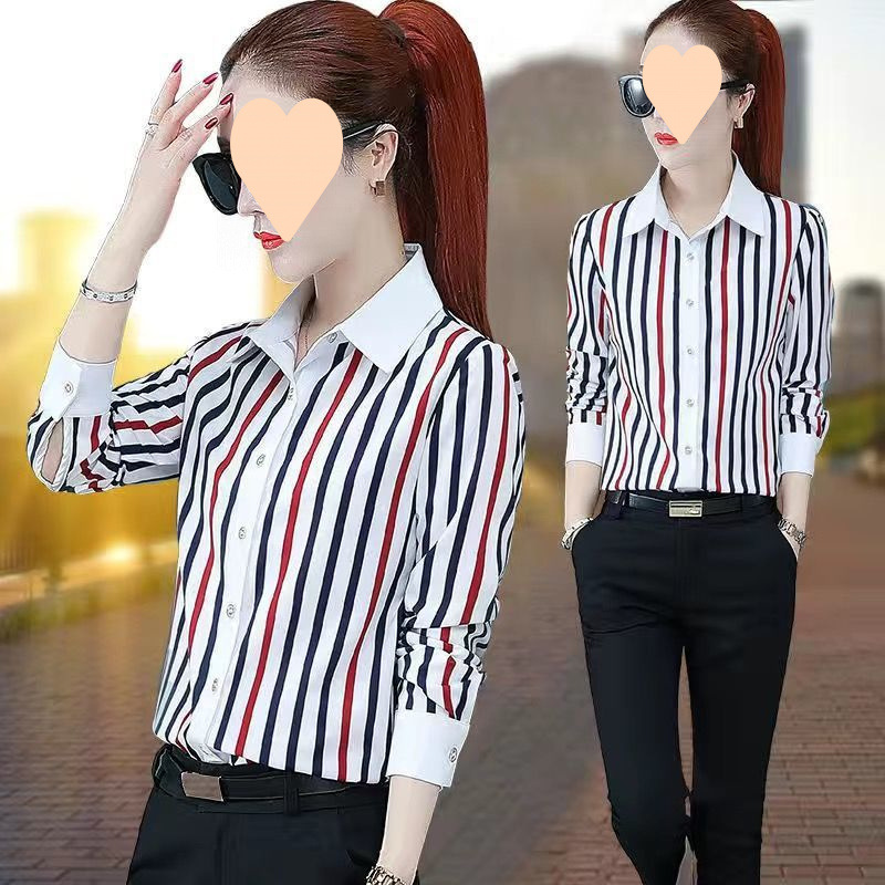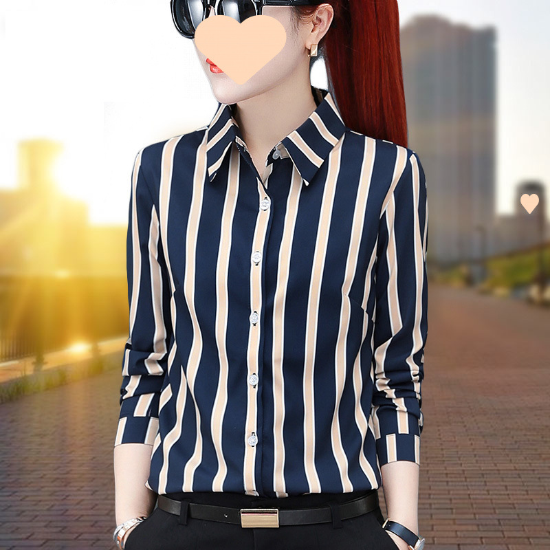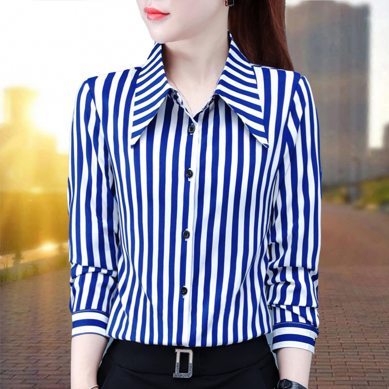 수직 스트라이프 셔츠 여성용 긴 소매 봄과 가을 2025 새로운 비즈니스 착용 올 매치 웨스턴 스타일 쉬폰 셔츠 우아한 탑