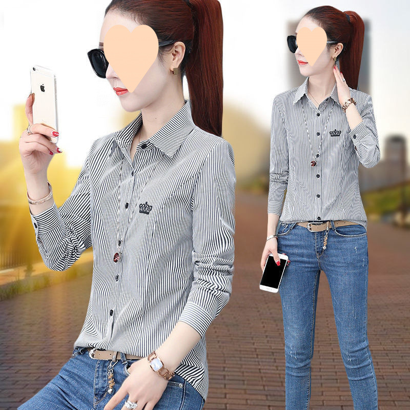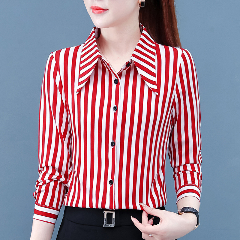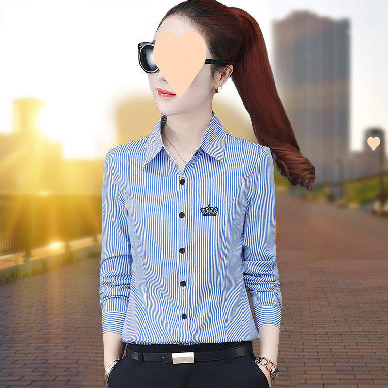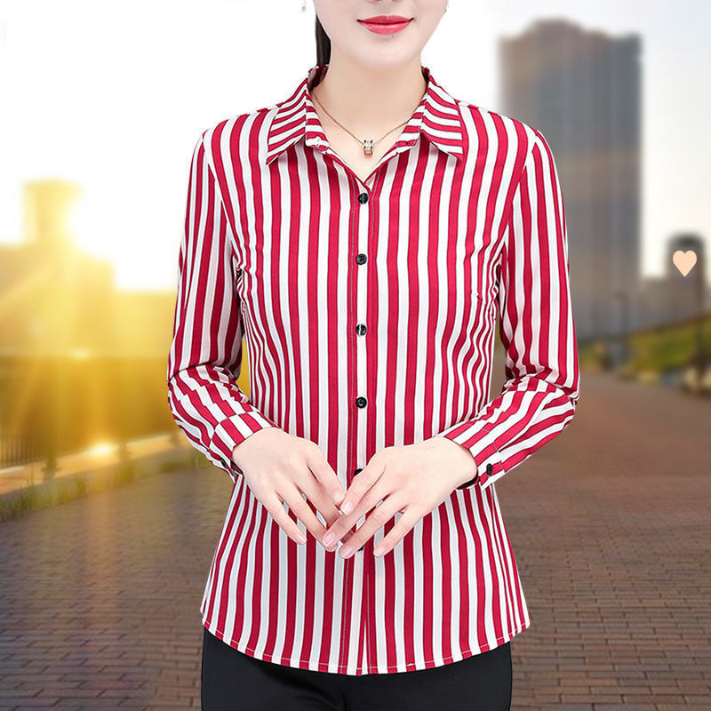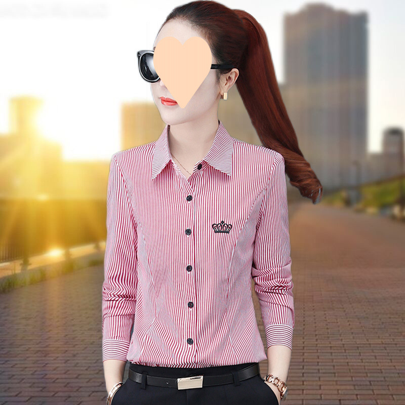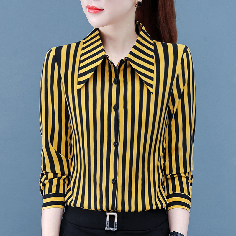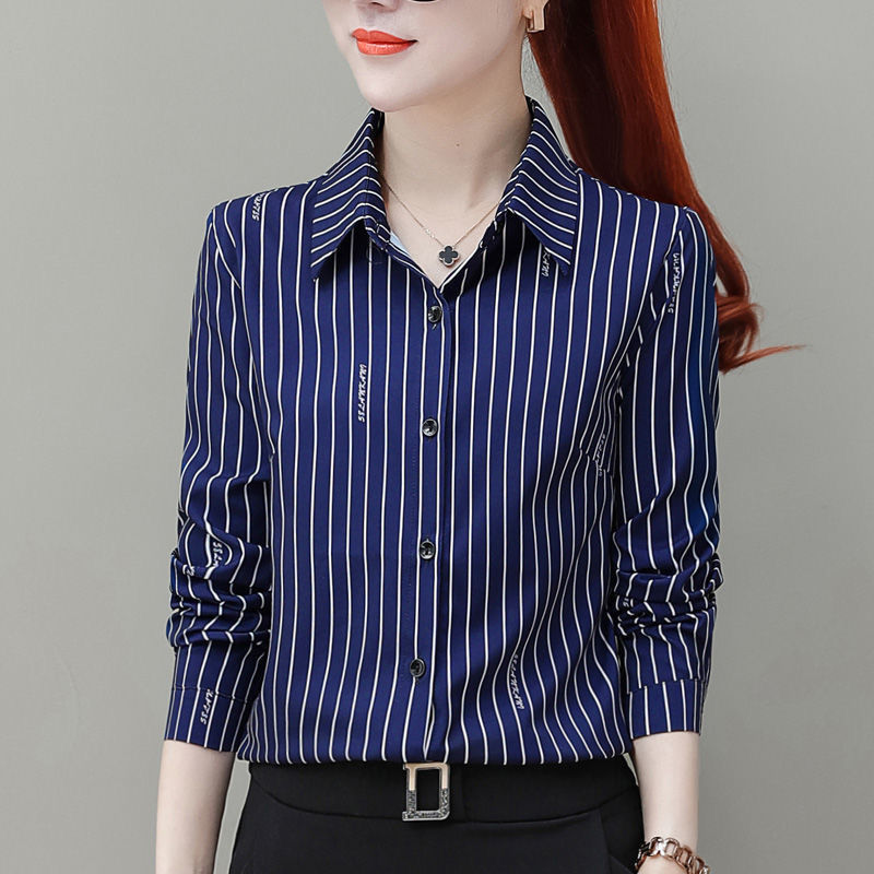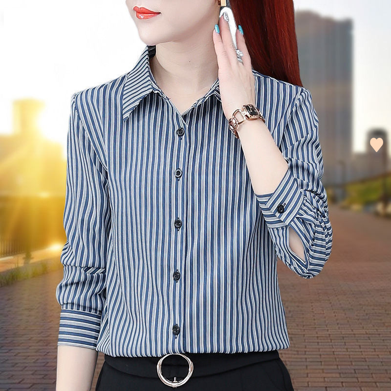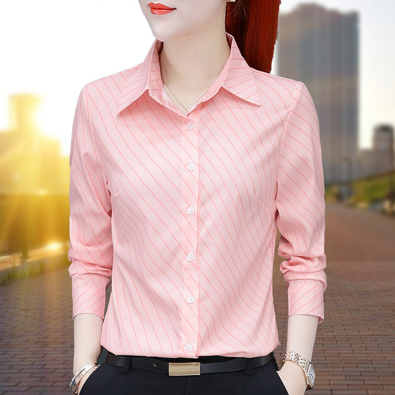 수직 스트라이프 셔츠 여성용 긴 소매 봄과 가을 2025 새로운 비즈니스 착용 올 매치 웨스턴 스타일 쉬폰 셔츠 우아한 탑
