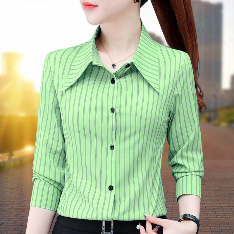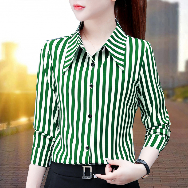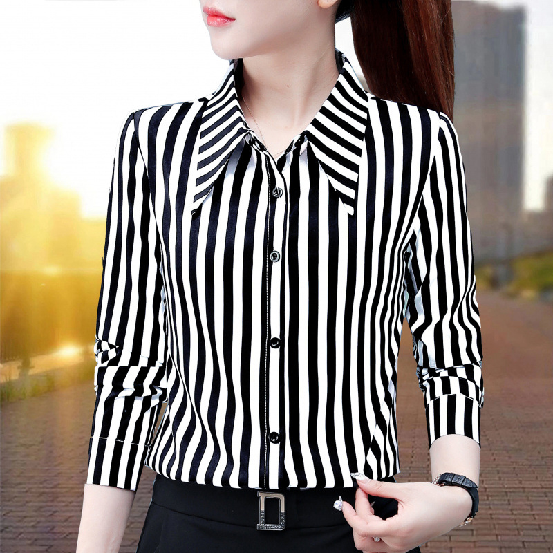 수직 스트라이프 셔츠 여성용 긴 소매 봄과 가을 2025 새로운 비즈니스 착용 올 매치 웨스턴 스타일 쉬폰 셔츠 우아한 탑스토어 가기
