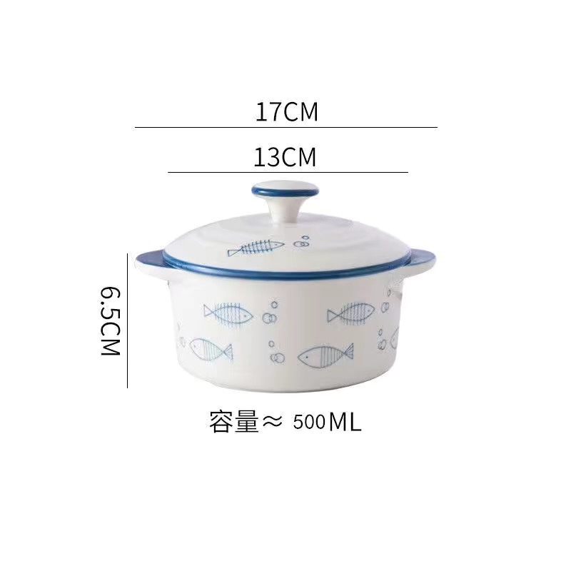 • 중형 뚜껑 달린 푸른 물고기 그릇 (500ml)⚑⚑