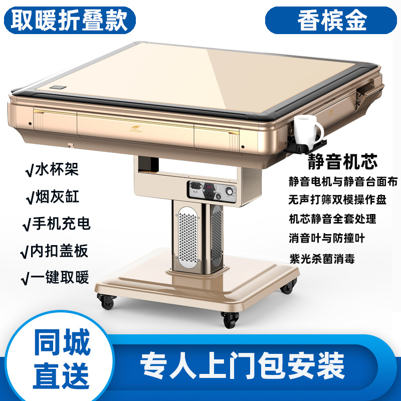 마작 기계 자동 접이식 음소거 지능형 4 포트 기계 식탁 이중 사용 저음 전기 난방 가정용 마작 테이블
