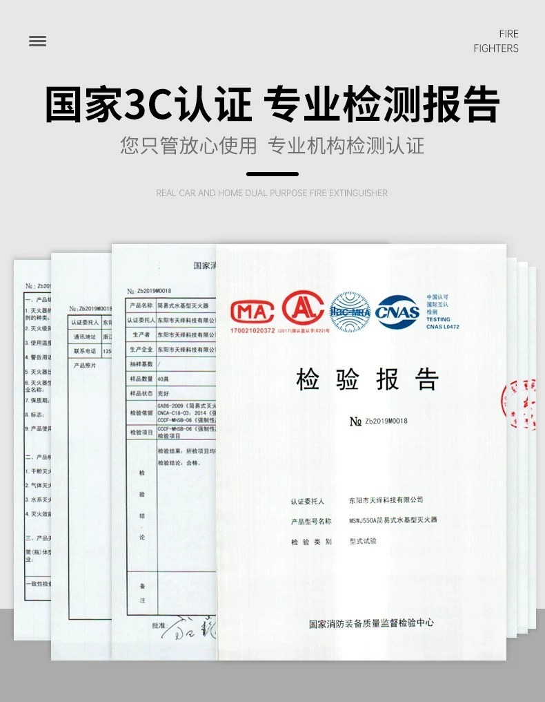 자동차 물 기반 소화기 자동차 가정용 개인 자동차 작은 휴대용 자동차 연간 검사 화재 장비 고온 저항스토어 가기