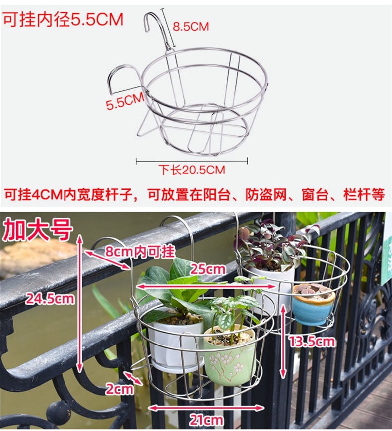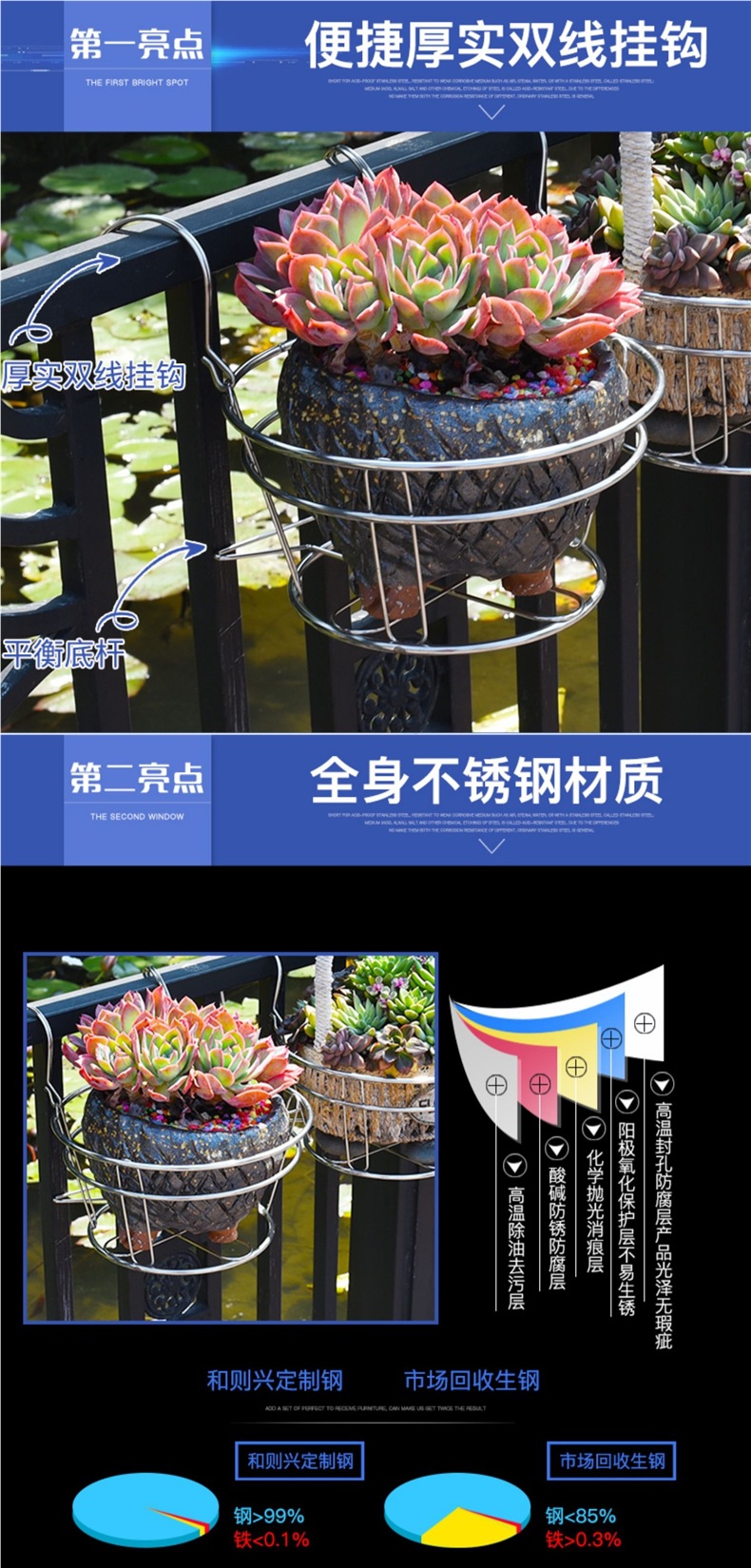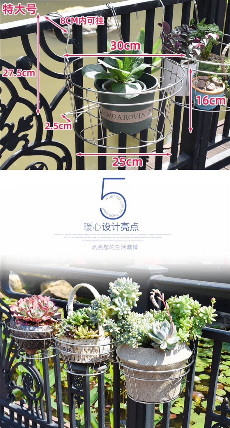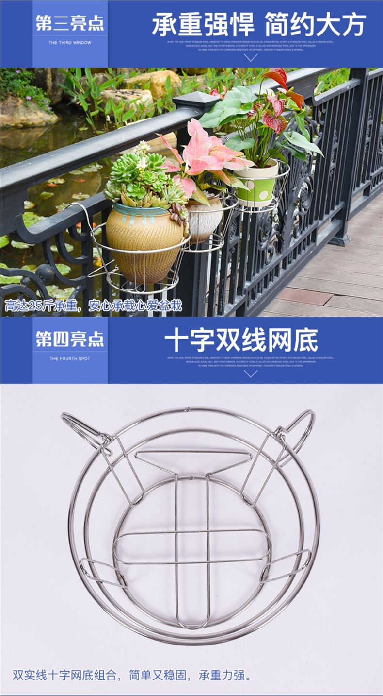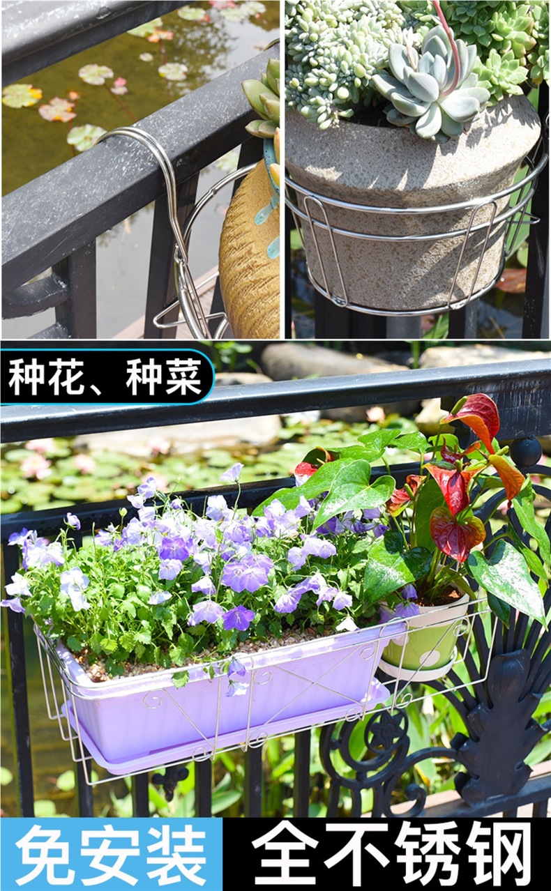 스테인레스 스틸 발코니 꽃 냄비 랙 저장 랙 걸이 난간 철 꽃 랙 교수형 난간 화분 식물