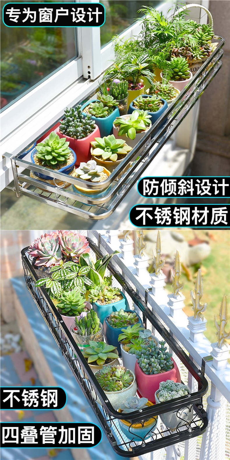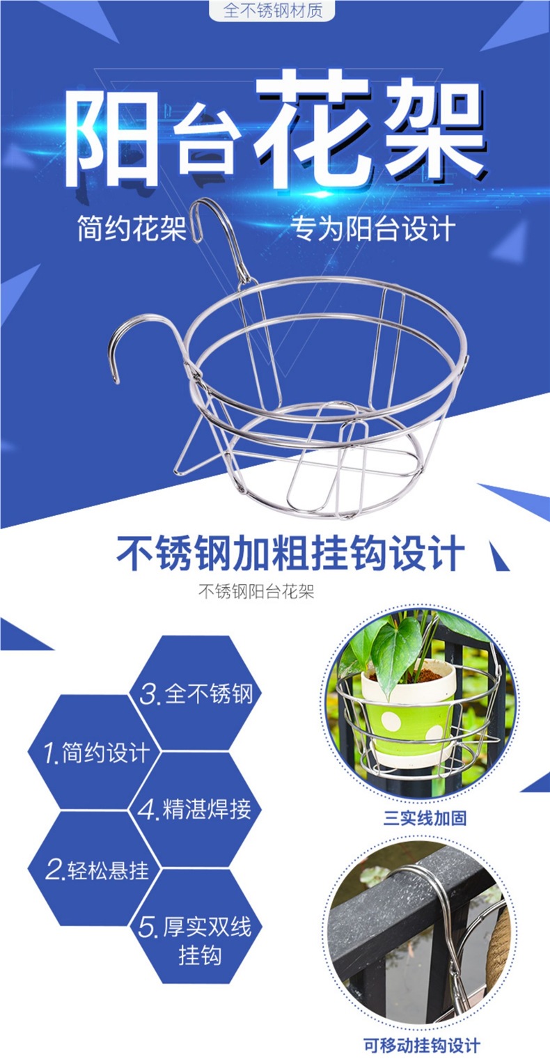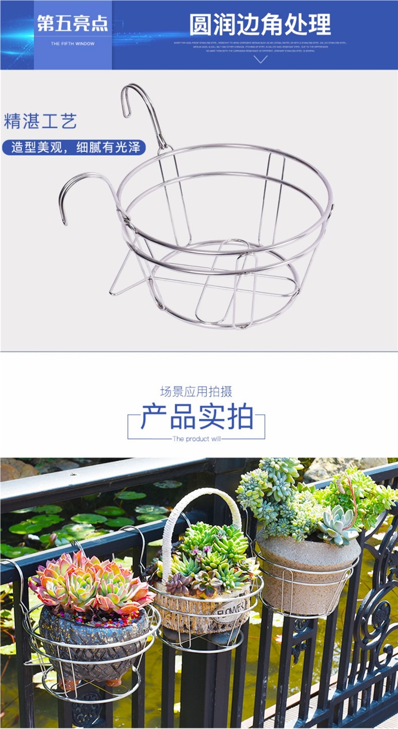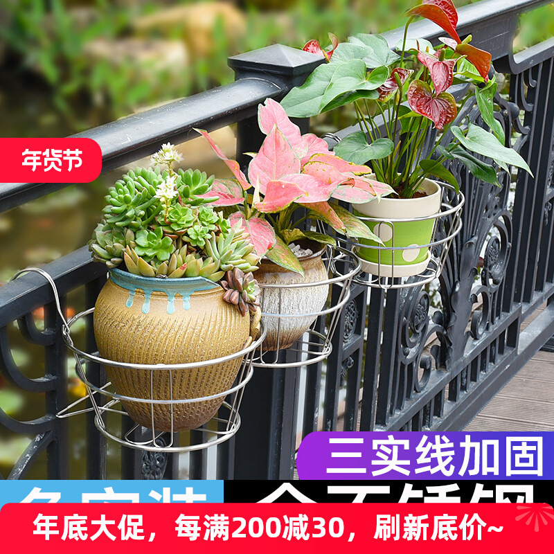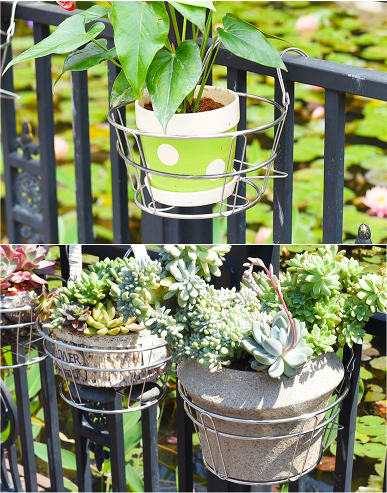 스테인레스 스틸 발코니 꽃 냄비 랙 저장 랙 걸이 난간 철 꽃 랙 교수형 난간 화분 식물