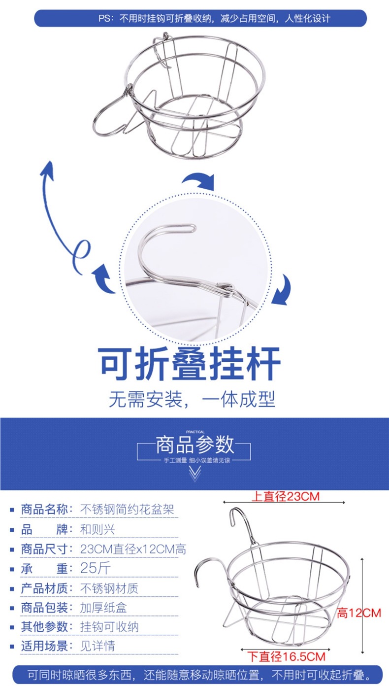 스테인레스 스틸 발코니 꽃 냄비 랙 저장 랙 걸이 난간 철 꽃 랙 교수형 난간 화분 식물스토어 가기