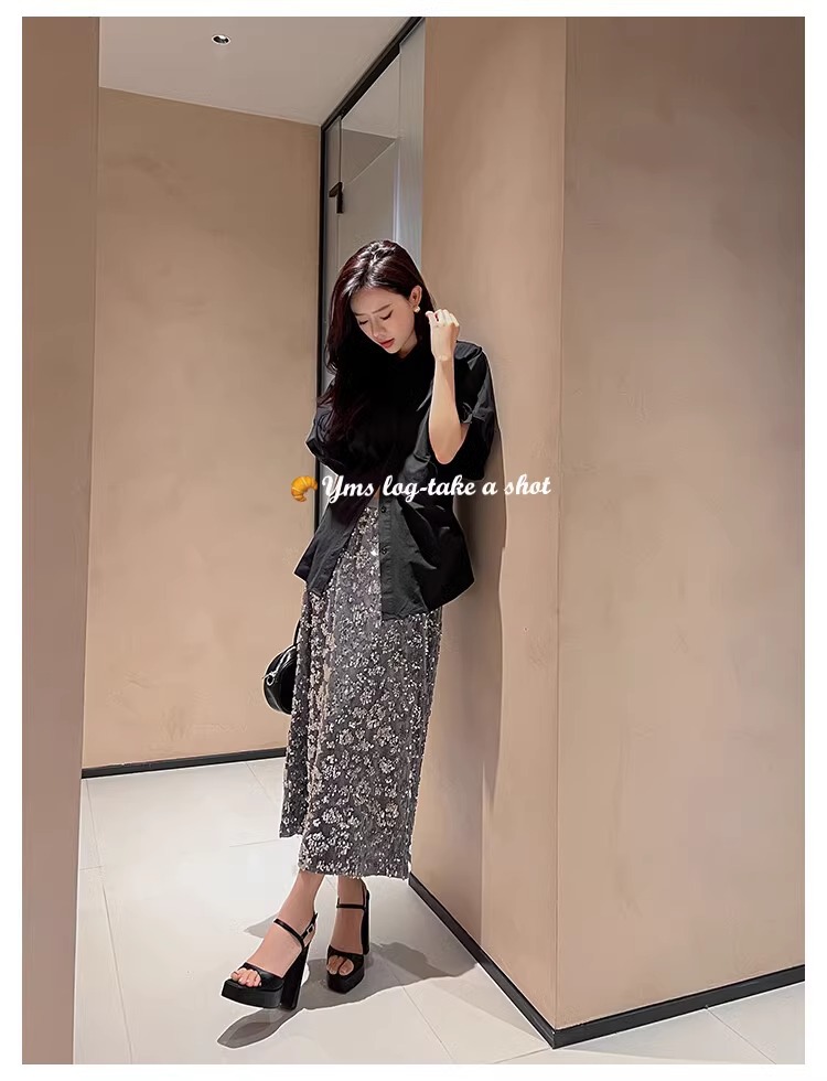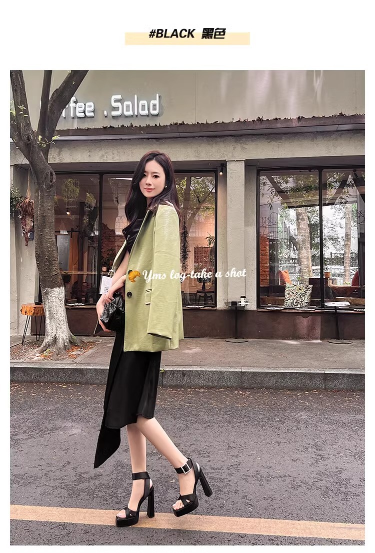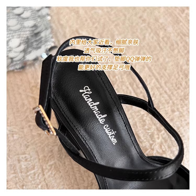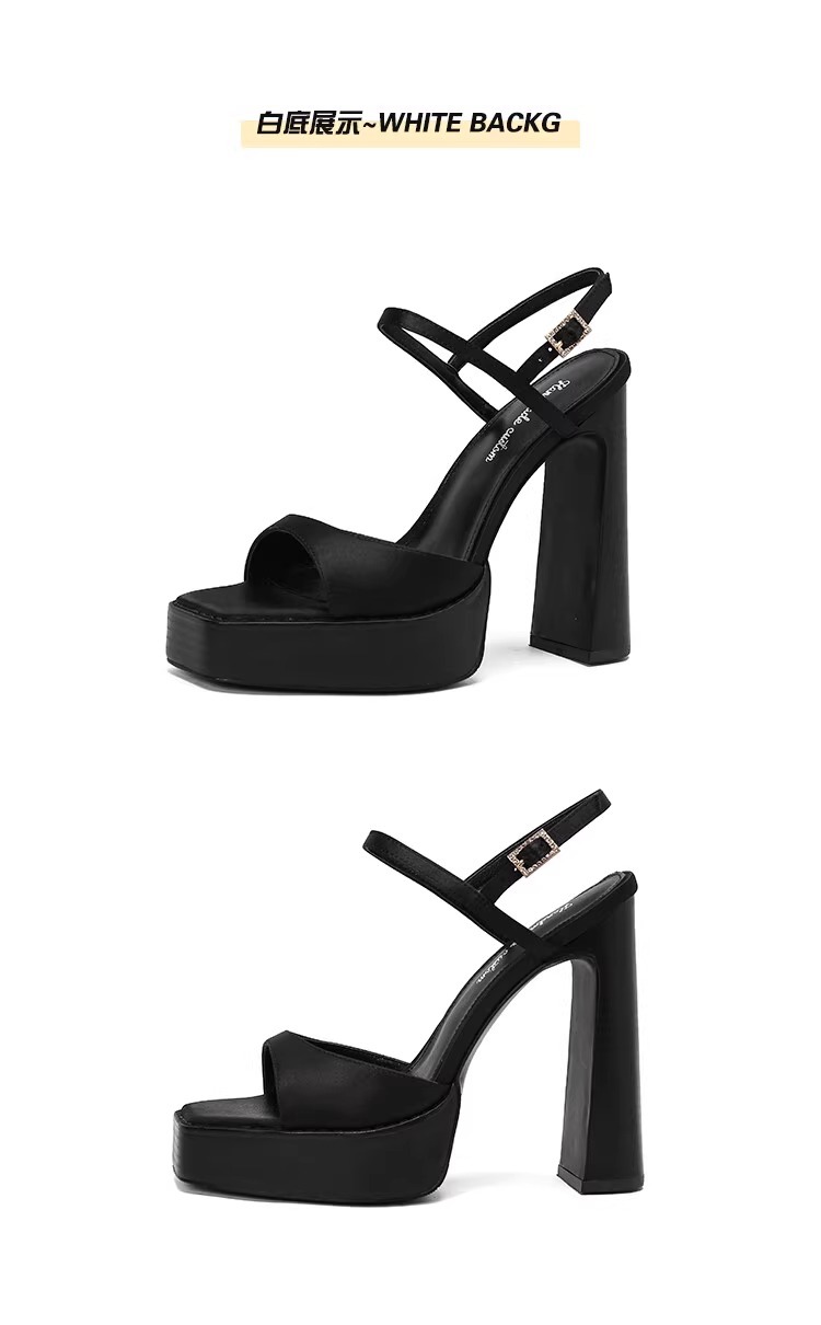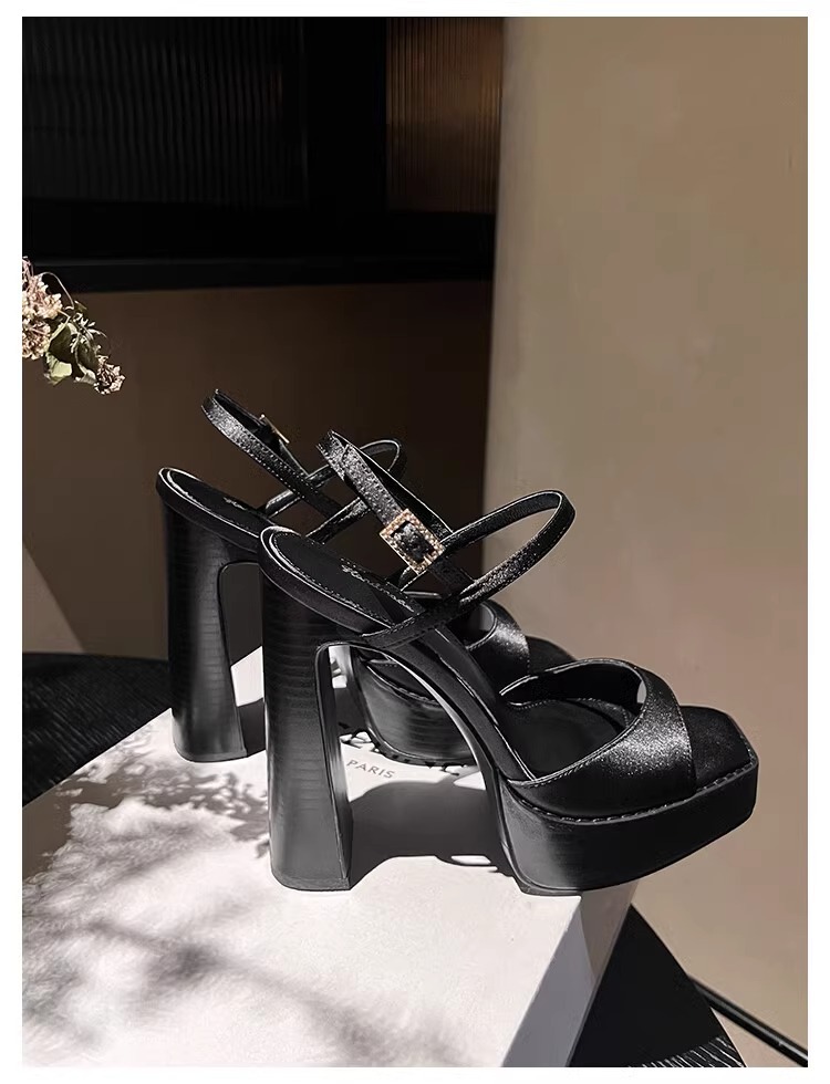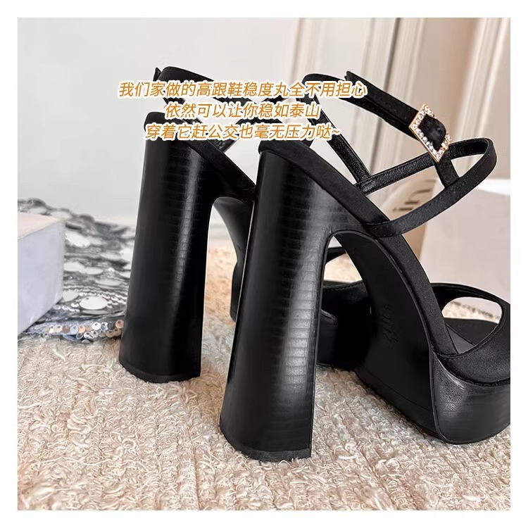 Zhao Lusi 같은 스타일 ~ 섹시한 두꺼운 하단 플랫폼 샌들 여성 여름 슈퍼 하이힐 새틴 두꺼운 블랙 하이힐 신발 여성스토어 가기