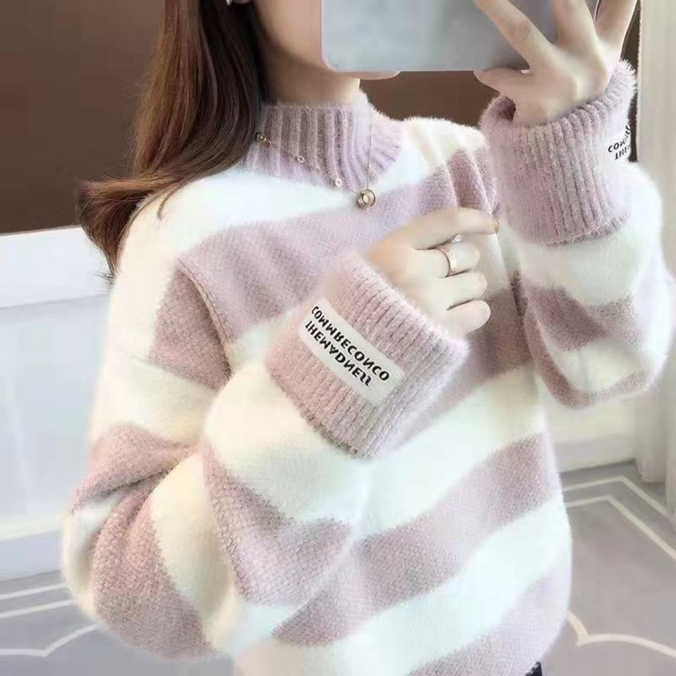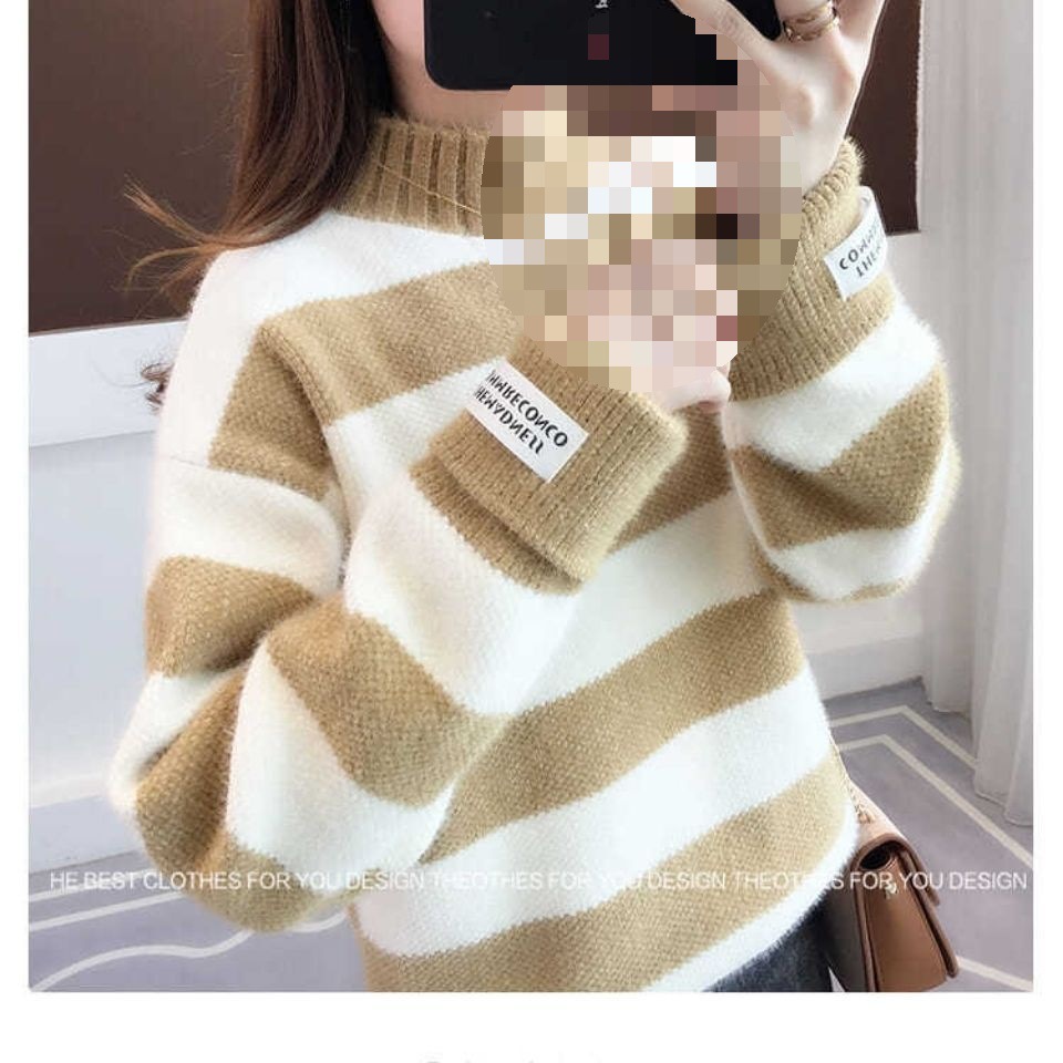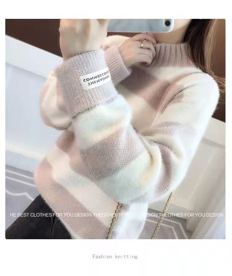 헤어 프리 모조 밍크 신학생 한국식 느슨한 가을 · 겨울 반높이 칼라 두꺼운 베이스 스웨터 여성 스웨터