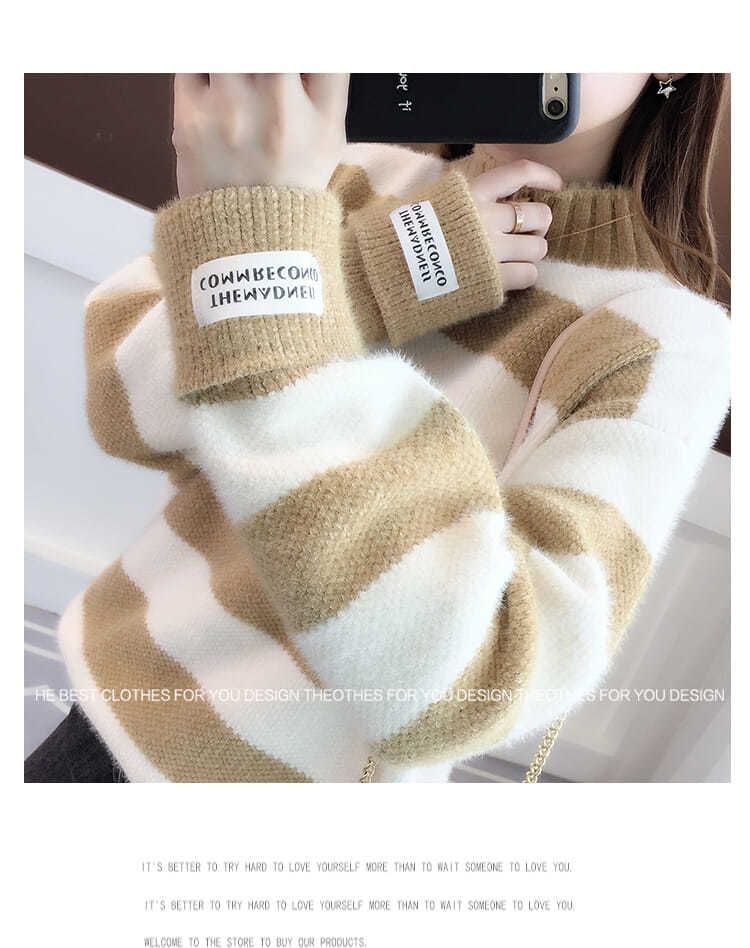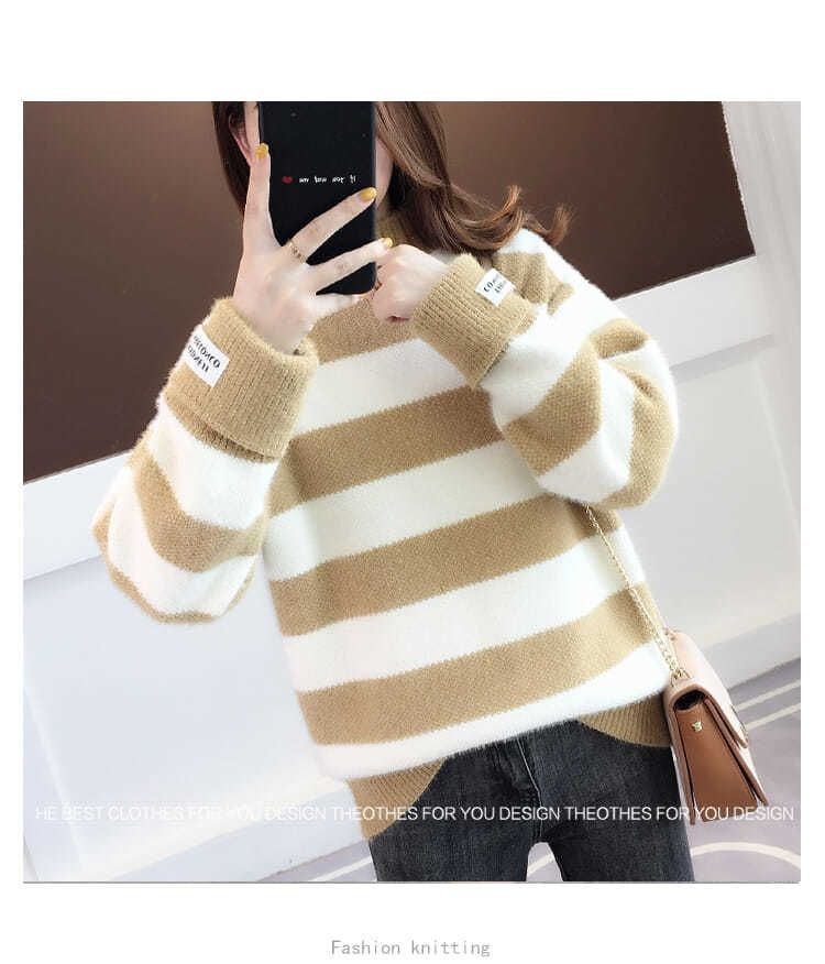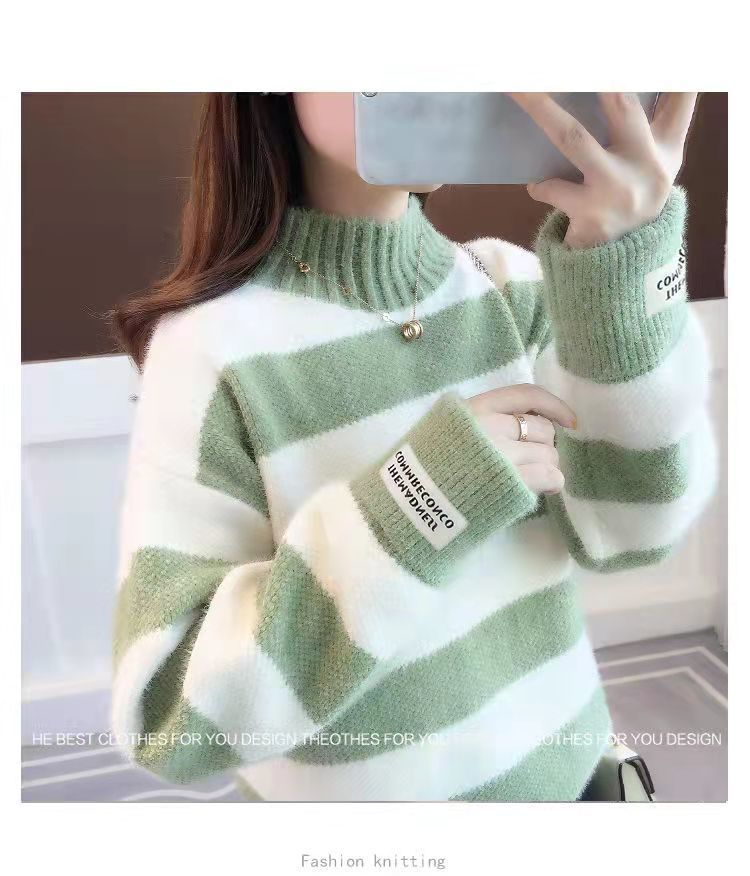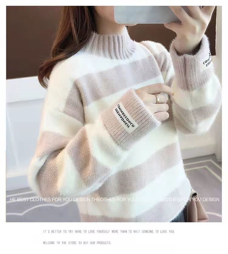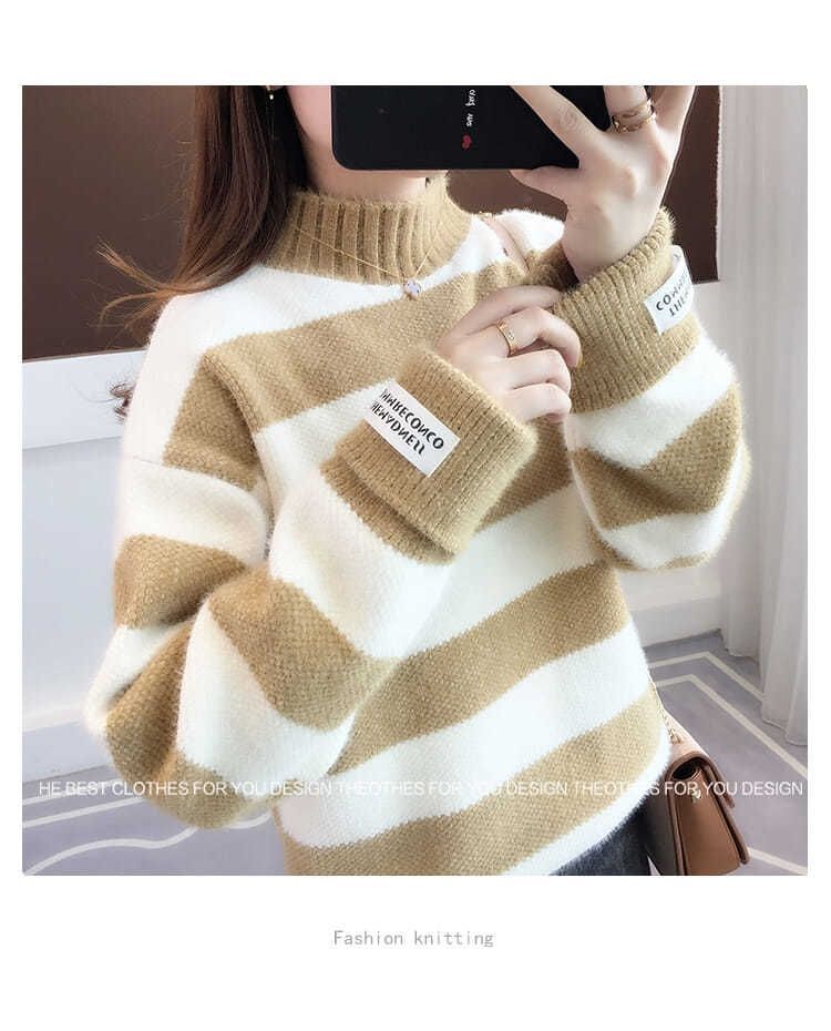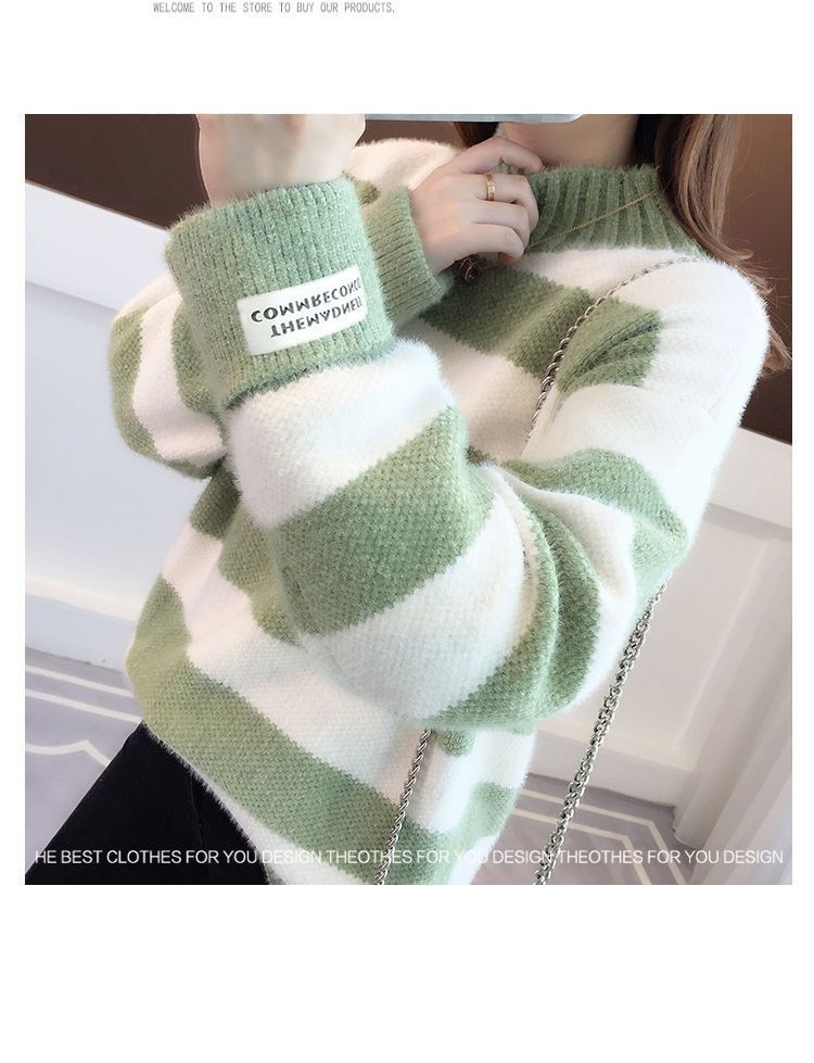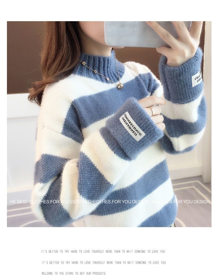 헤어 프리 모조 밍크 신학생 한국식 느슨한 가을 · 겨울 반높이 칼라 두꺼운 베이스 스웨터 여성 스웨터스토어 가기