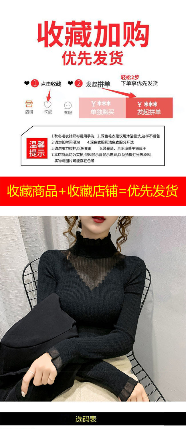 하프 터틀넥 레이스 스티칭 할로우 스웨터 여성 가을 및 겨울 새로운 서양식 슬림 핏 내부 니트 베이스 셔츠 여성용 탑스토어 가기