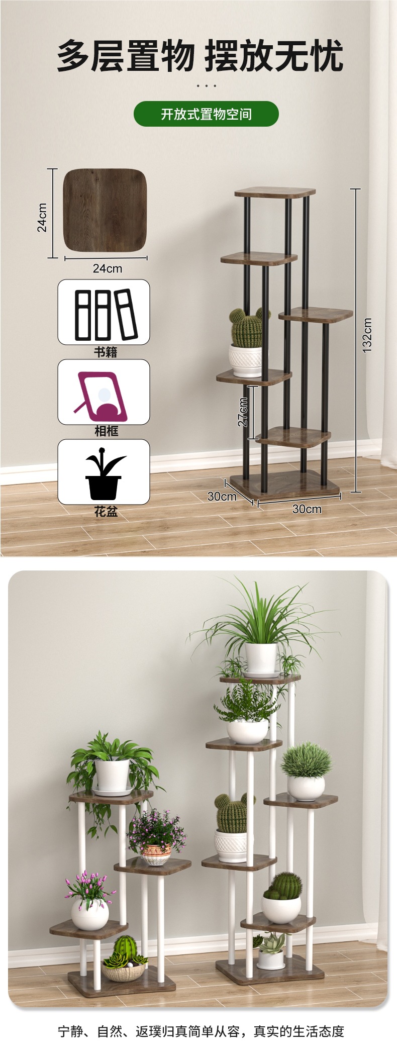 가정용 거실 꽃 선반 바닥에 서있는 다층 발코니 꽃 냄비 랙 그린 로즈 식물 저장 단단한 나무 과립 보관 랙스토어 가기