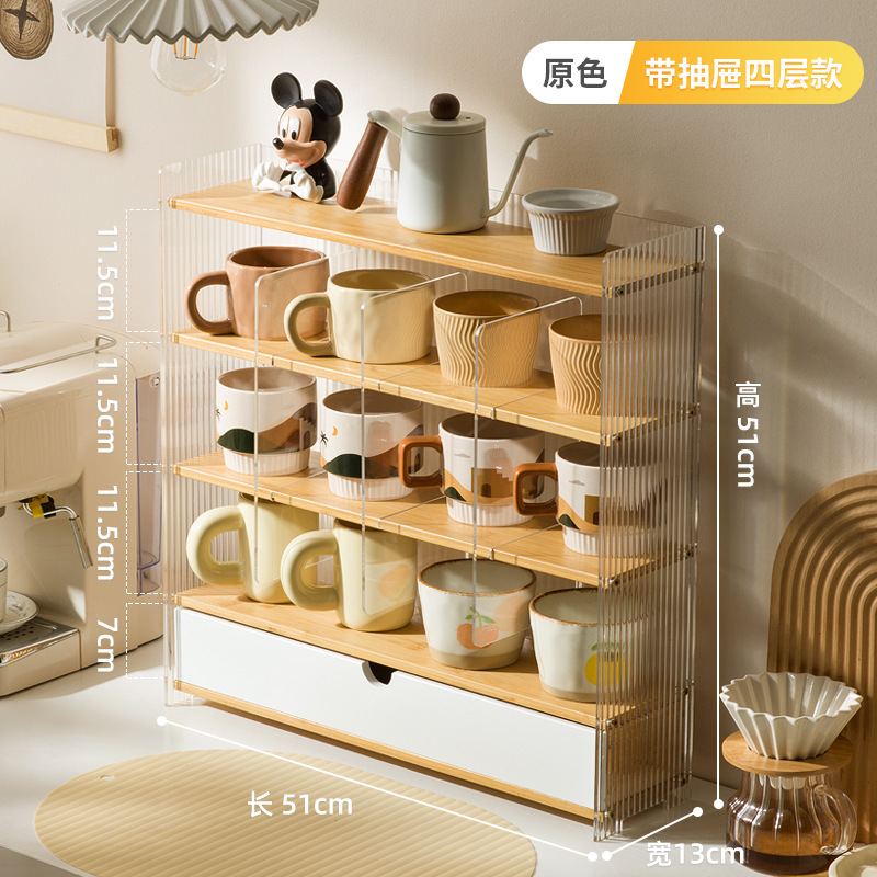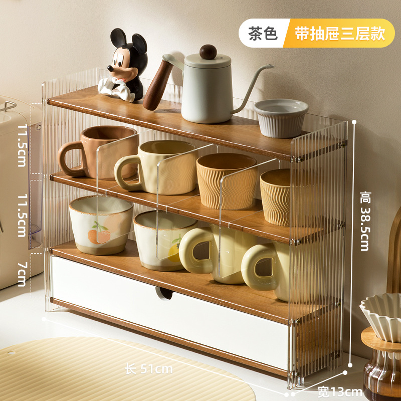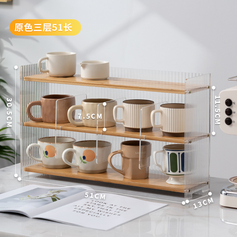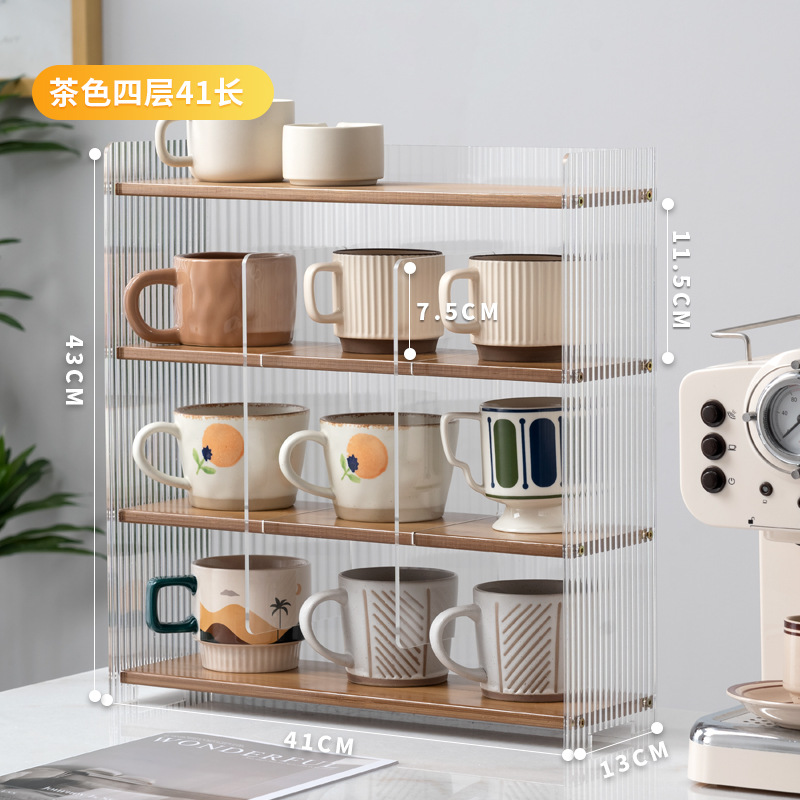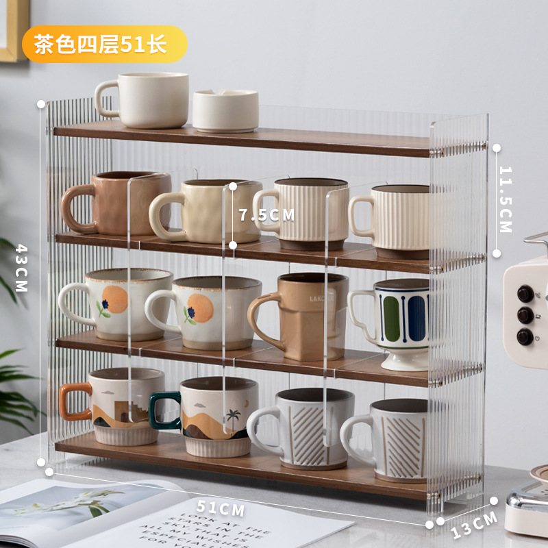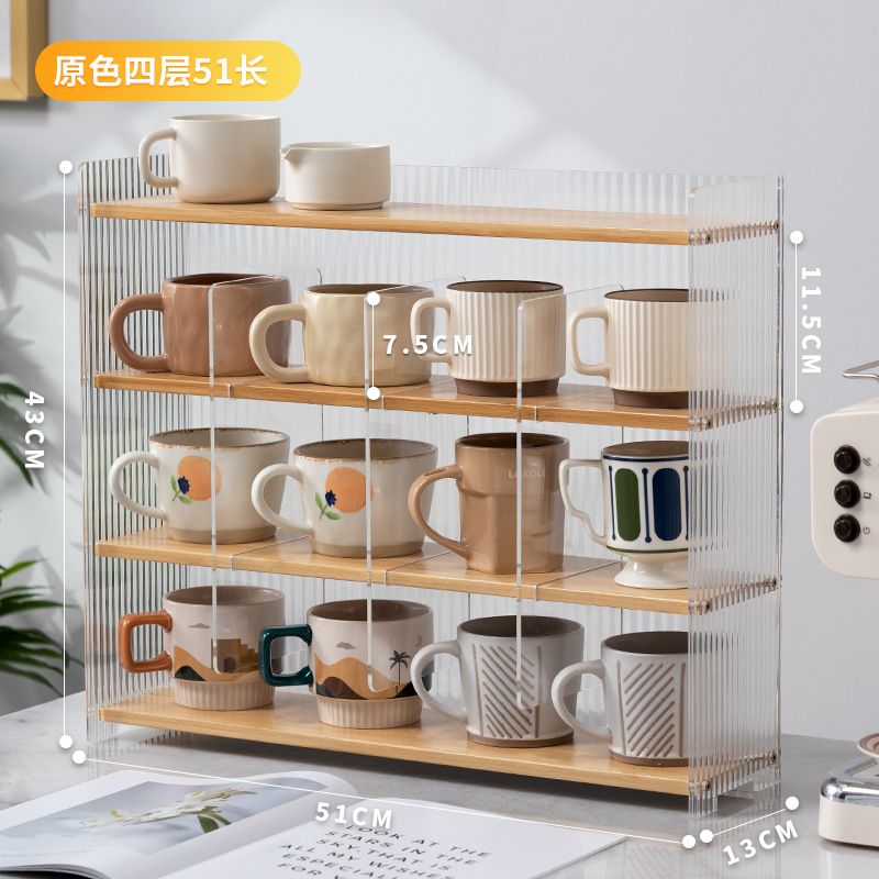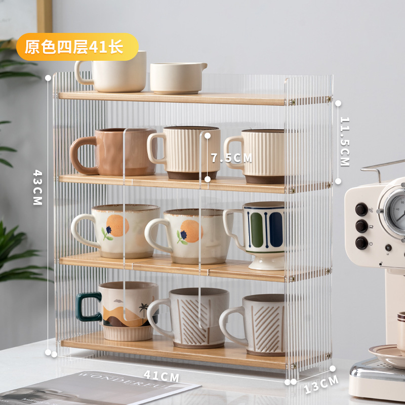 아크릴 컵 저장 데스크탑 워터 컵 티 컵 마크 커피 컵 방진 Jiugongge 컵 홀더 솔리드 우드 스토리지 랙