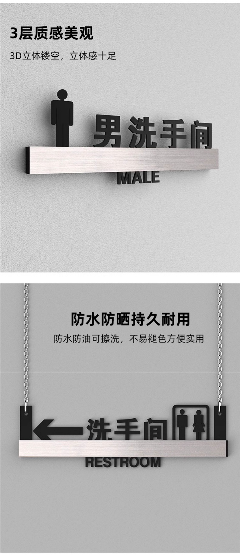 금속 화장실 문판 아크릴 남성과 여성의 화장실 간판 개인 남성 화장실 간판 위생스토어 가기