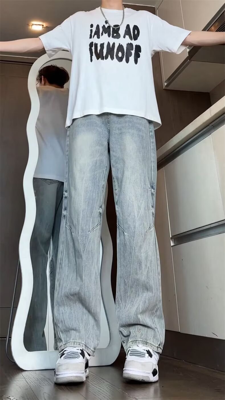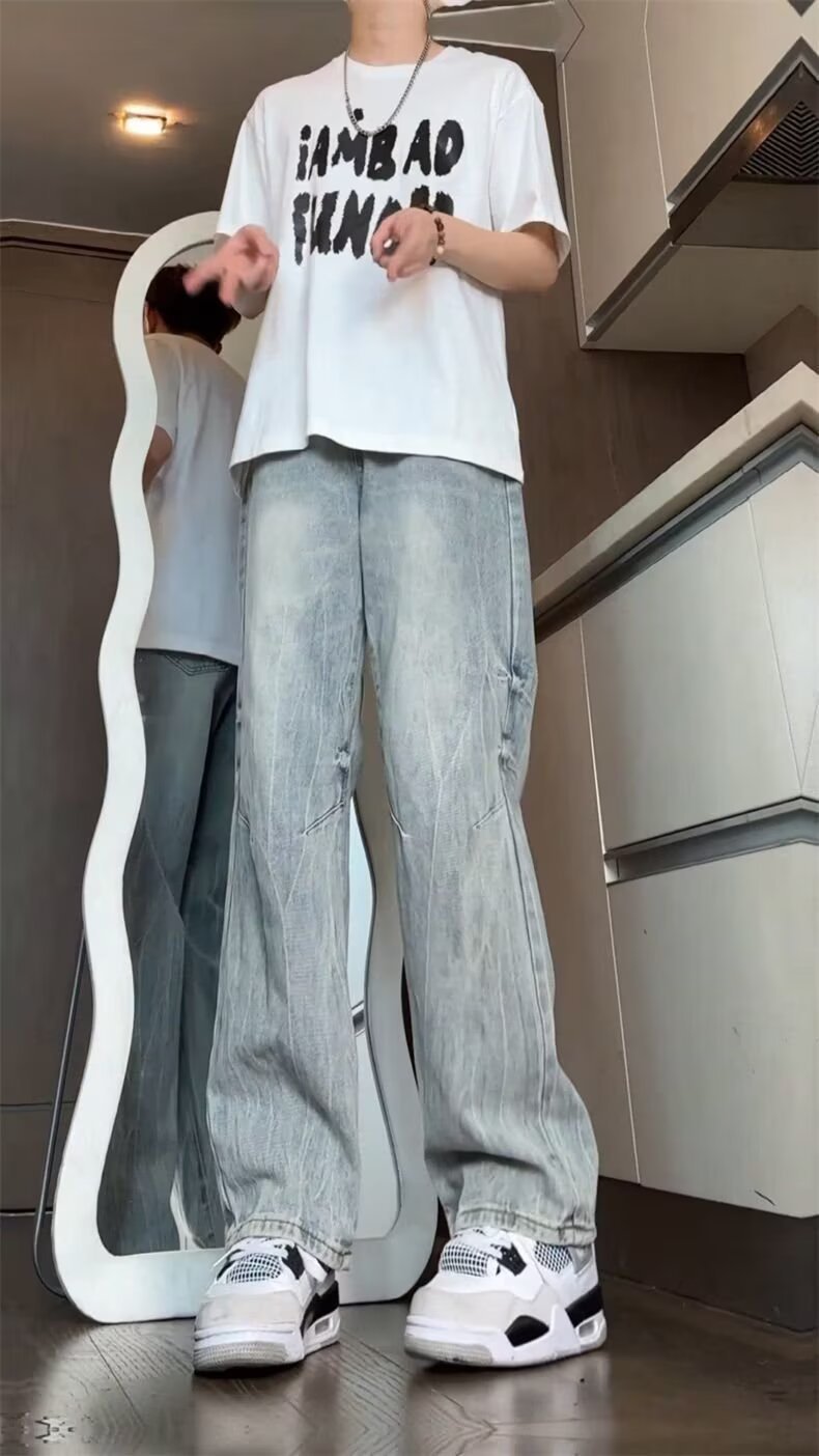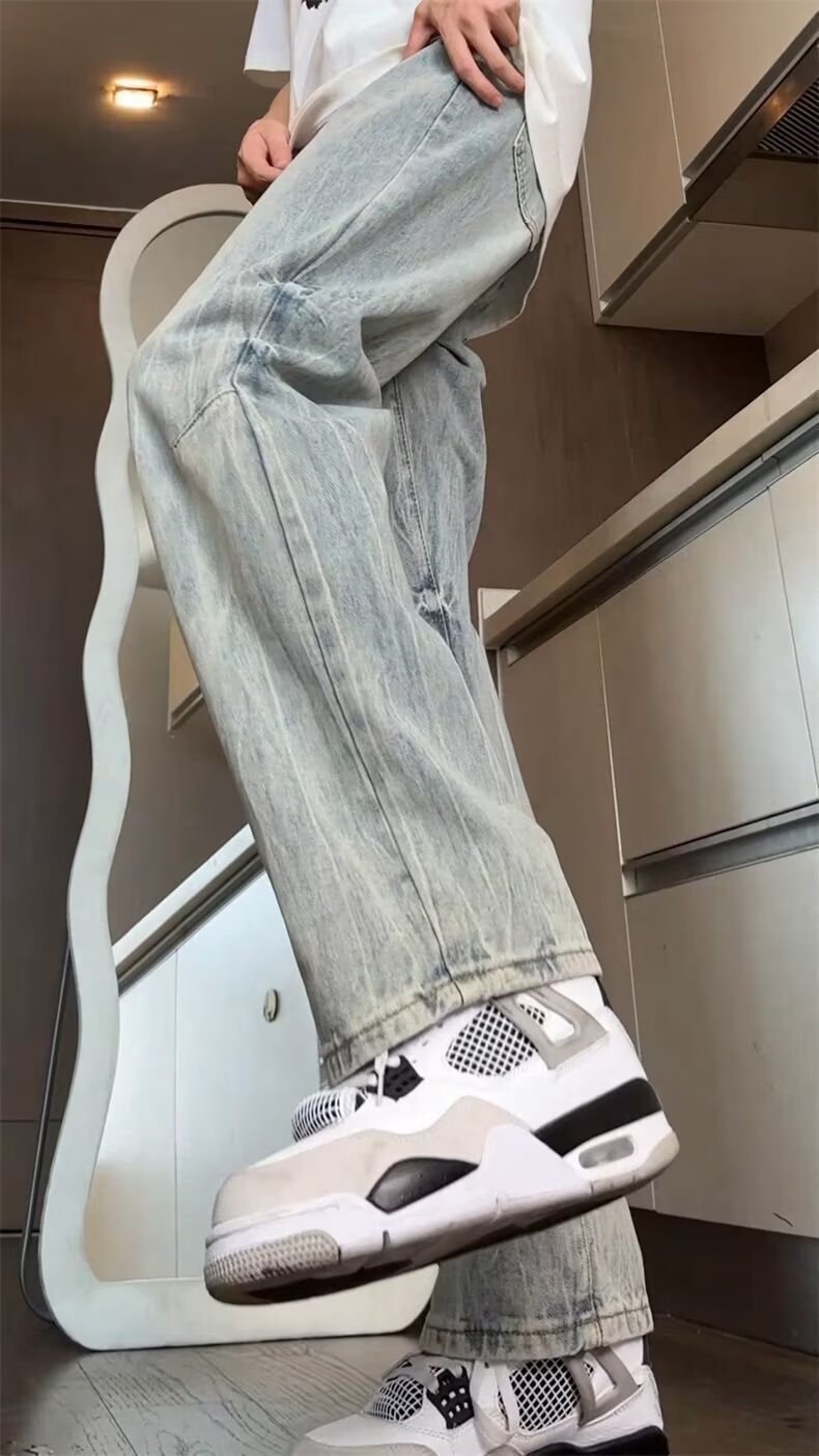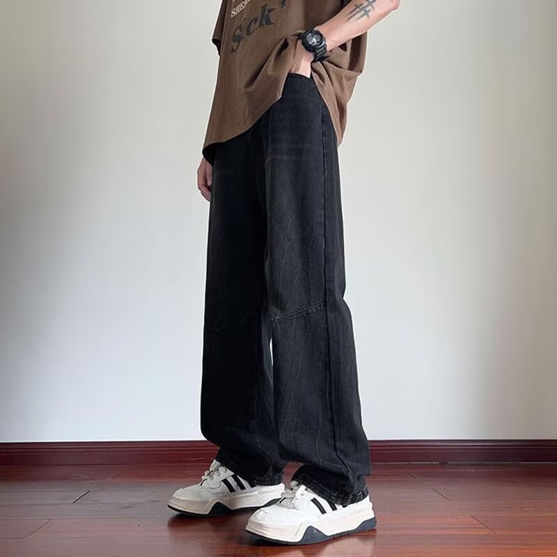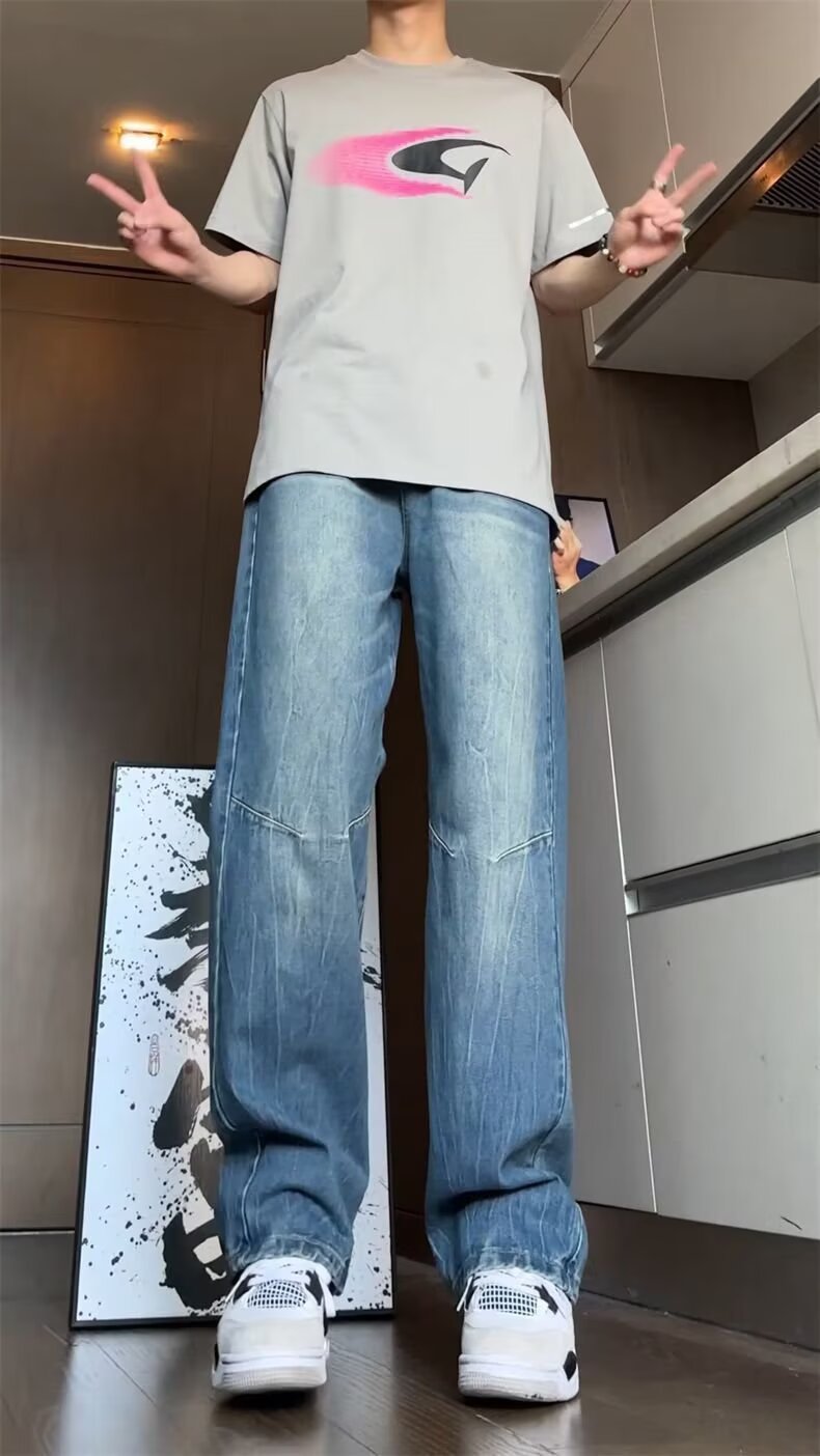 홍콩 스타일 트렌디 브랜드 청바지 남성 여름 새로운 도착 2025 미국 스타일 하이 스트리트 인 트렌디 유피 잘 생긴 스트레이트 바지 남성복스토어 가기