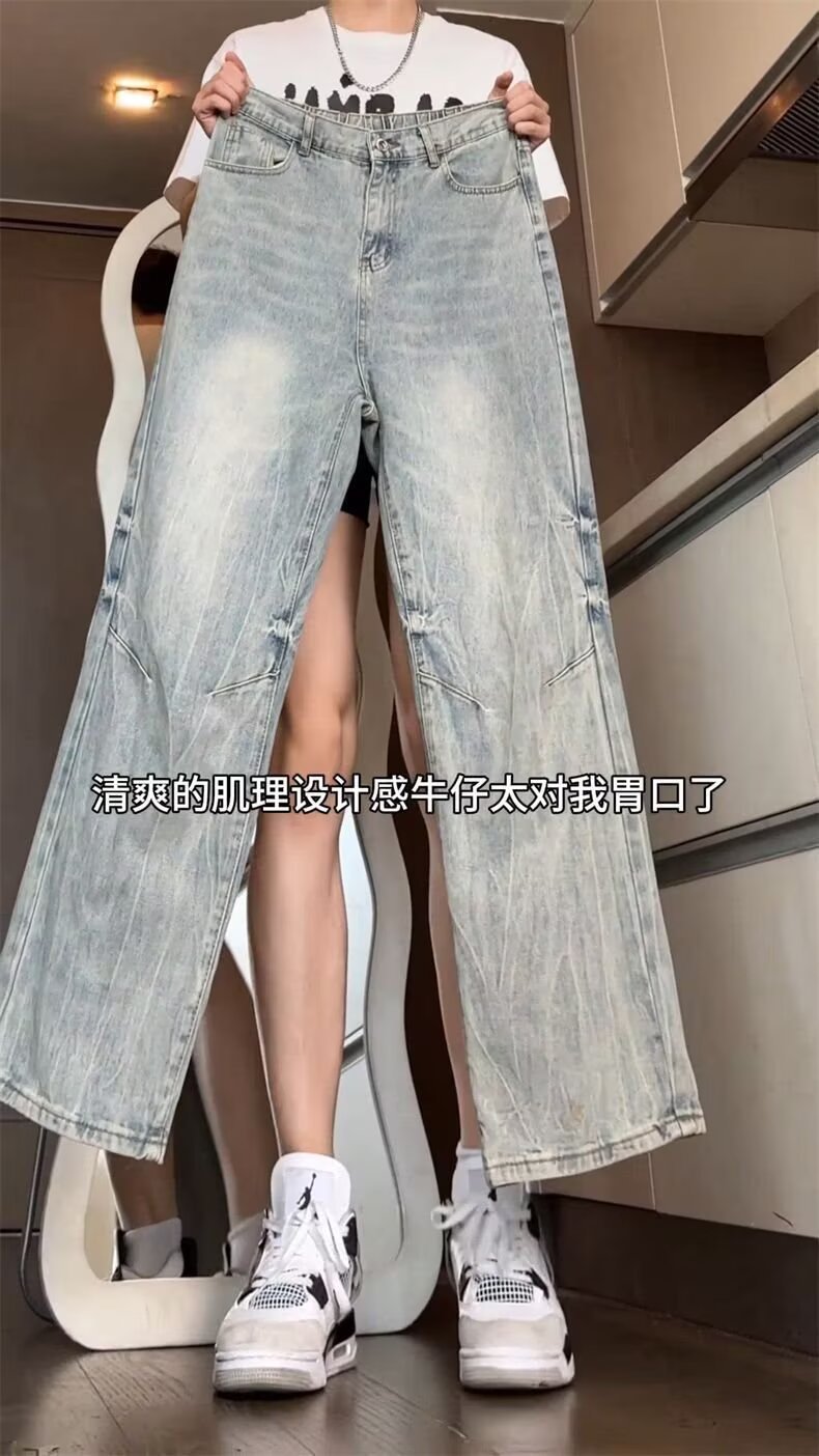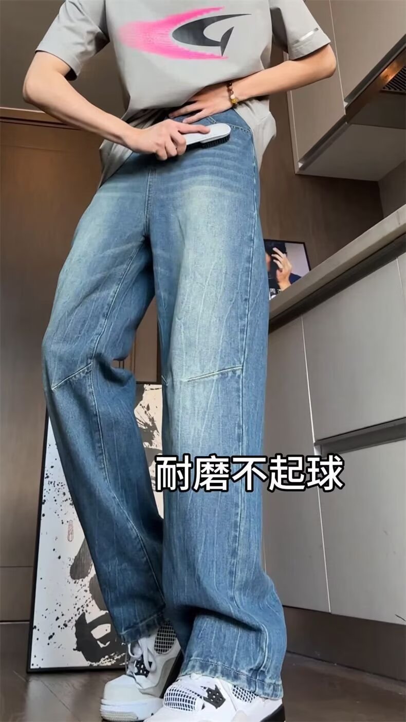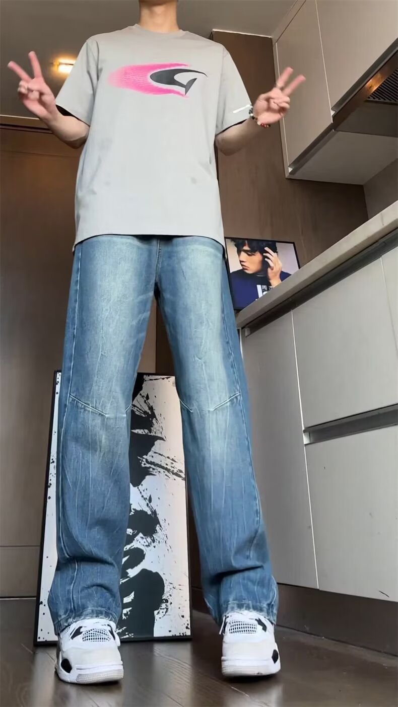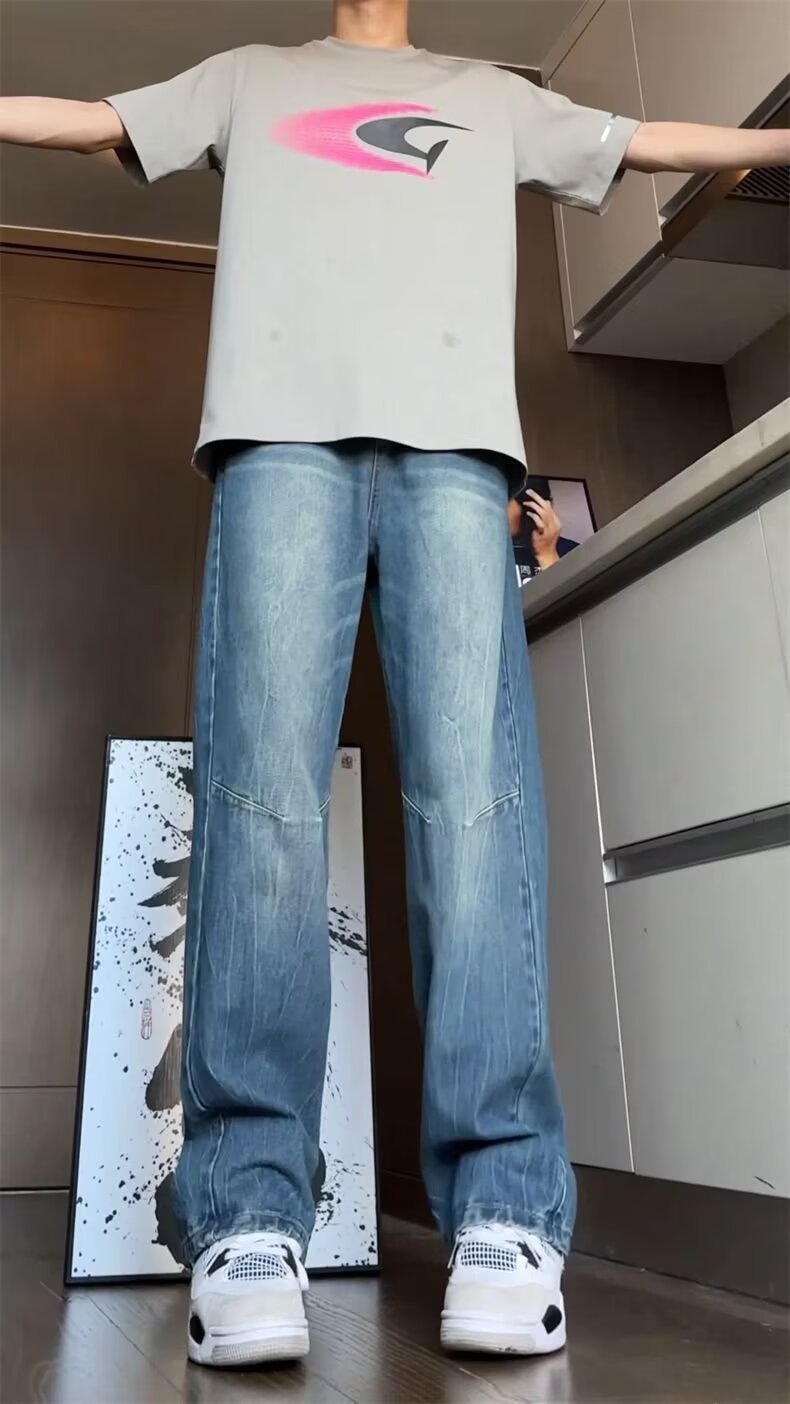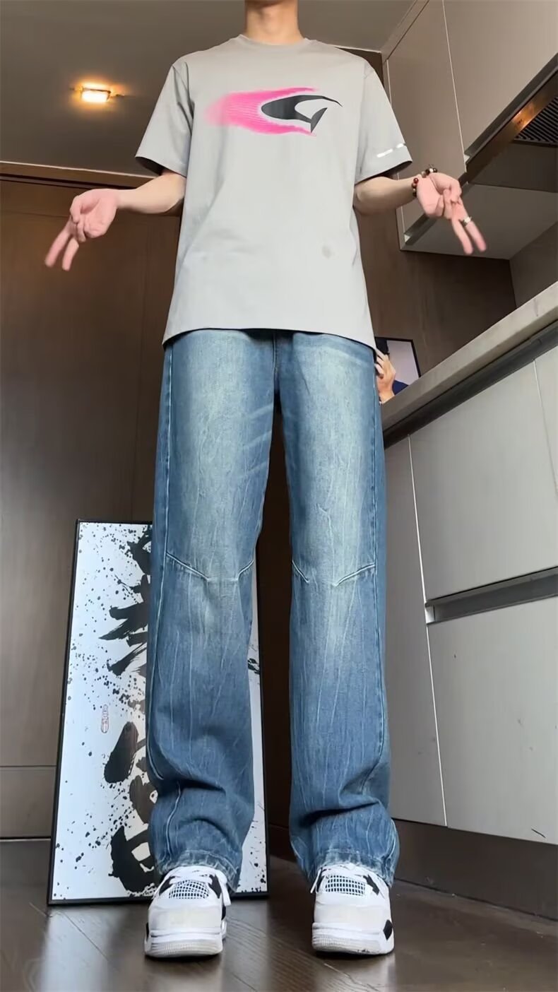 홍콩 스타일 트렌디 브랜드 청바지 남성 여름 새로운 도착 2025 미국 스타일 하이 스트리트 인 트렌디 유피 잘 생긴 스트레이트 바지 남성복스토어 가기